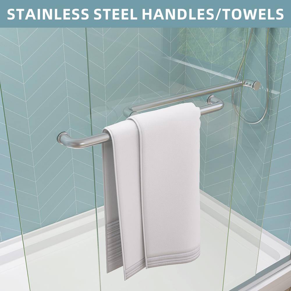 Q: Can the door handle be used to hang towels? A: Absolutely. The handles are designed as a towel bar, providing a convenient space to hang large bath towels.