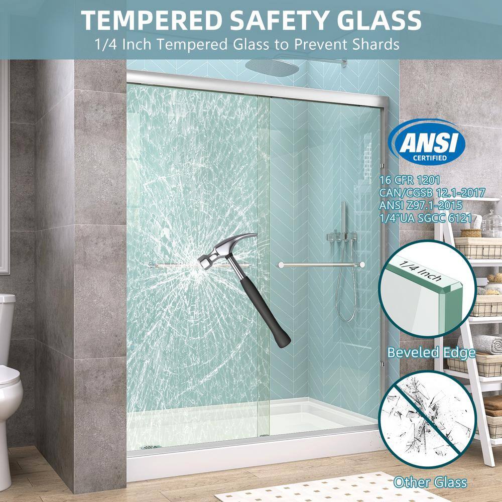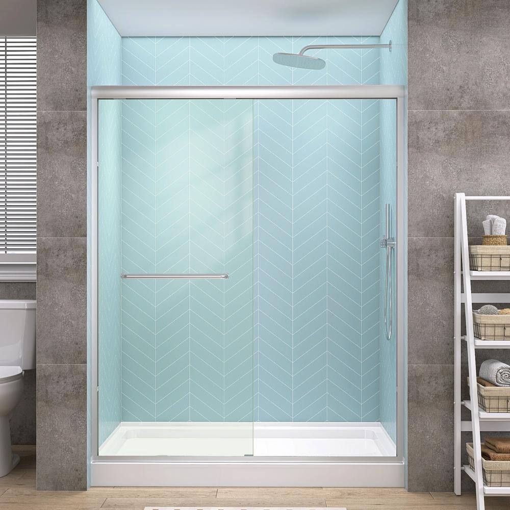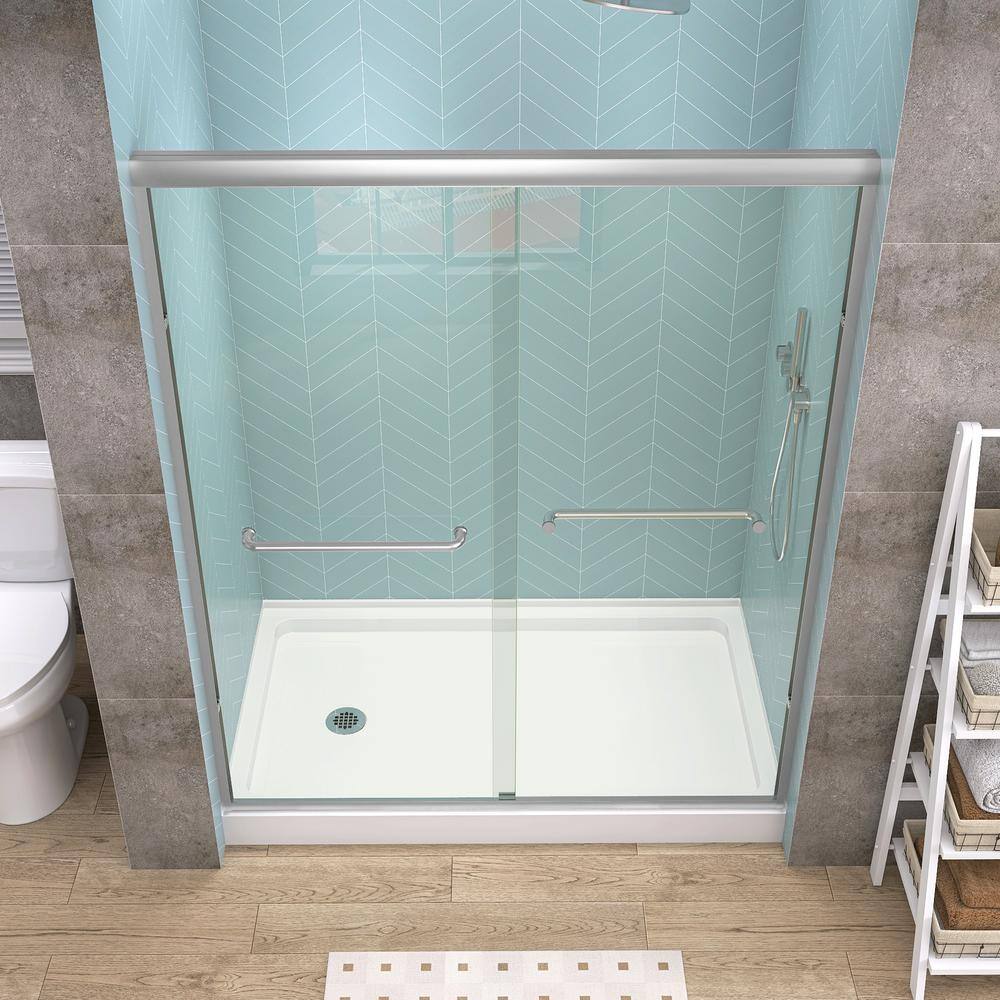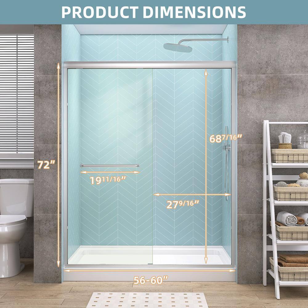 Adjustable Width: Fits openings from 56 in. to 60 in., perfect for versatile bathroom installations.
