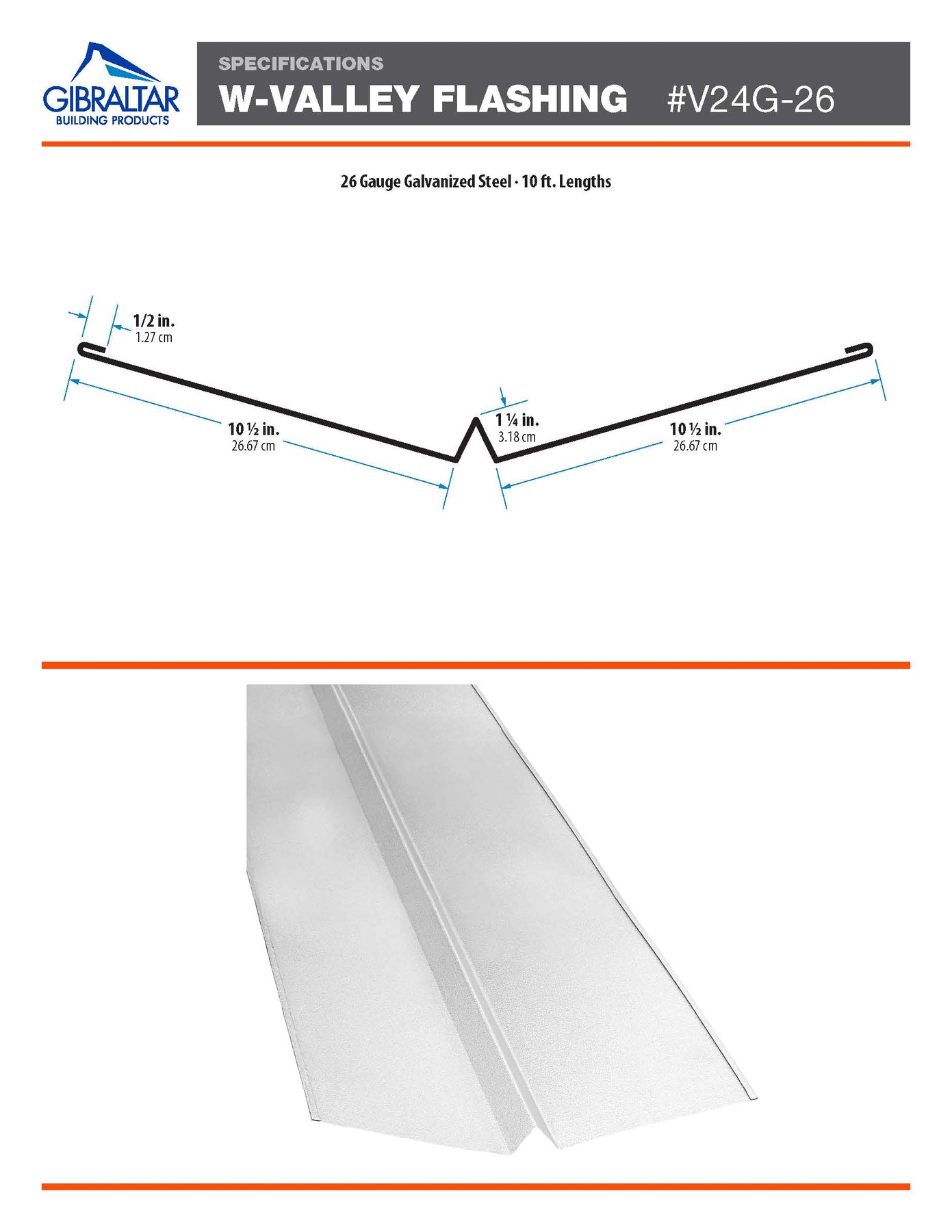 This Gibraltar W-Valley drip edge channels water from intersecting roof slopes into gutters to protect the valley area. Made from durable 26-gauge stainless/galvanized steel in a sliver finish, it’s hemmed for safety and easy installation on shingle or metal roofs.