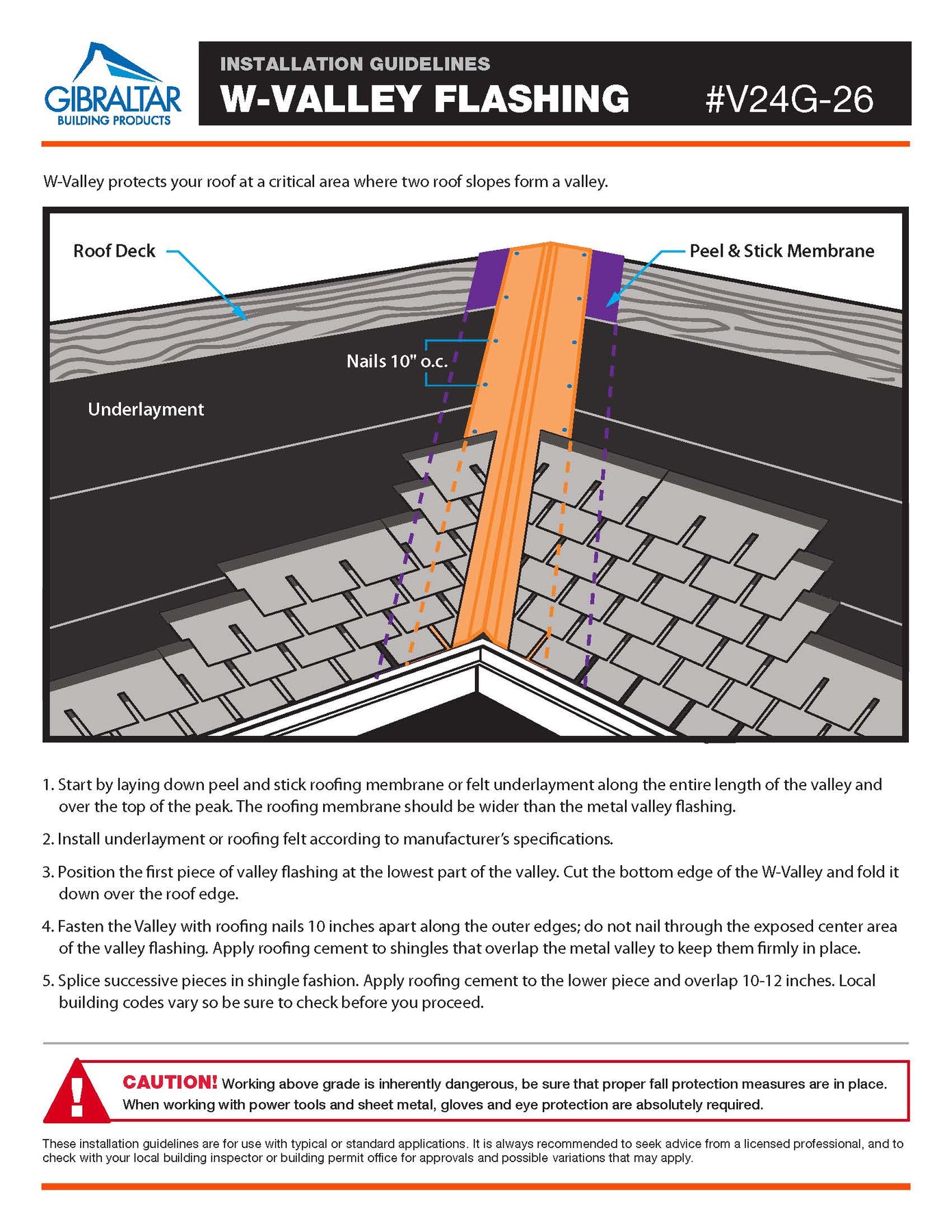 Q: Any installation tips? A: Lay membrane or felt first, position at the valley low point, fasten along outer edges about every 10 inches, and overlap successive pieces 10–12 inches.