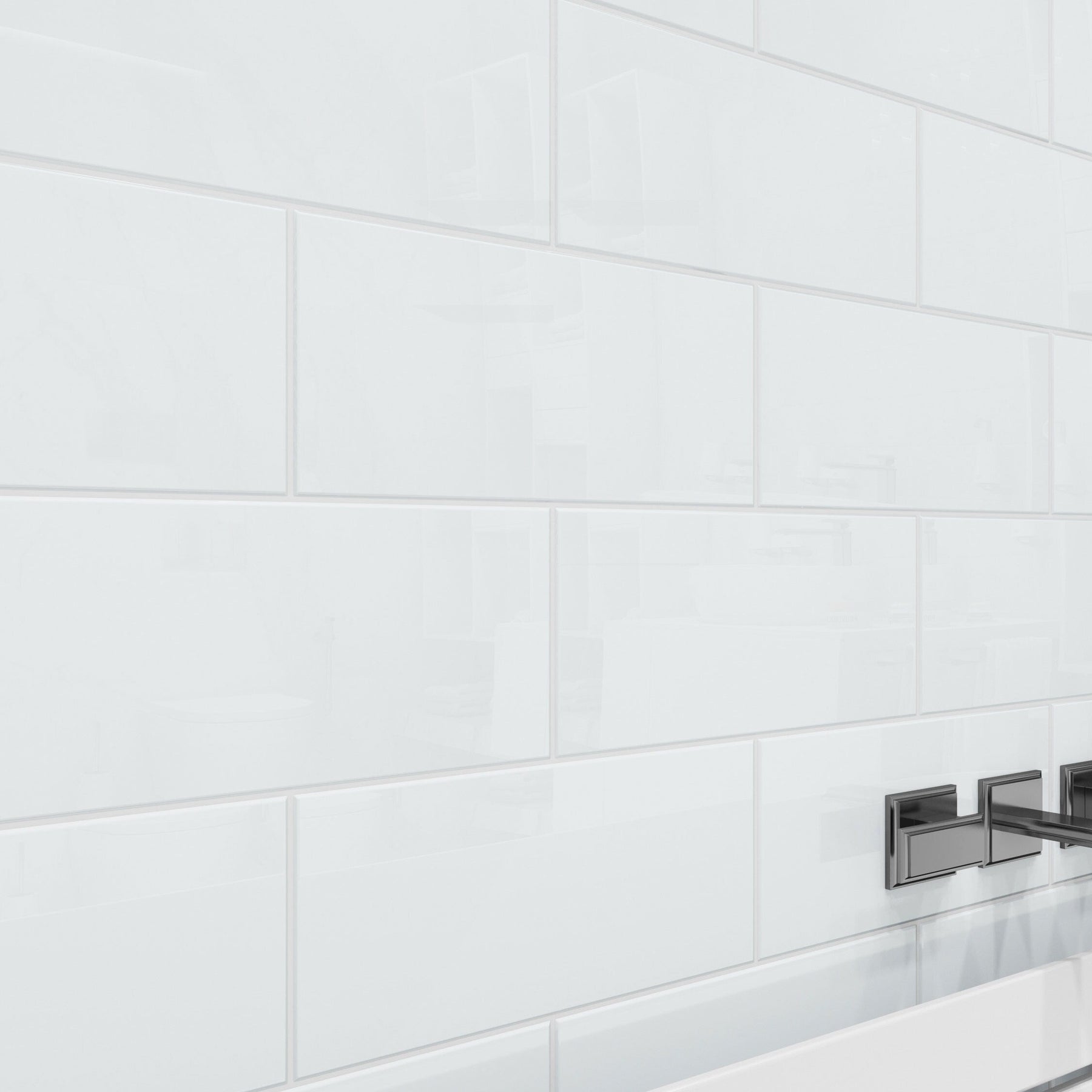Giorbello Classic Premium Bright White 6-in x 12-in Glossy Glass Subway Wall Tile (5-sq. ft/ Carton)