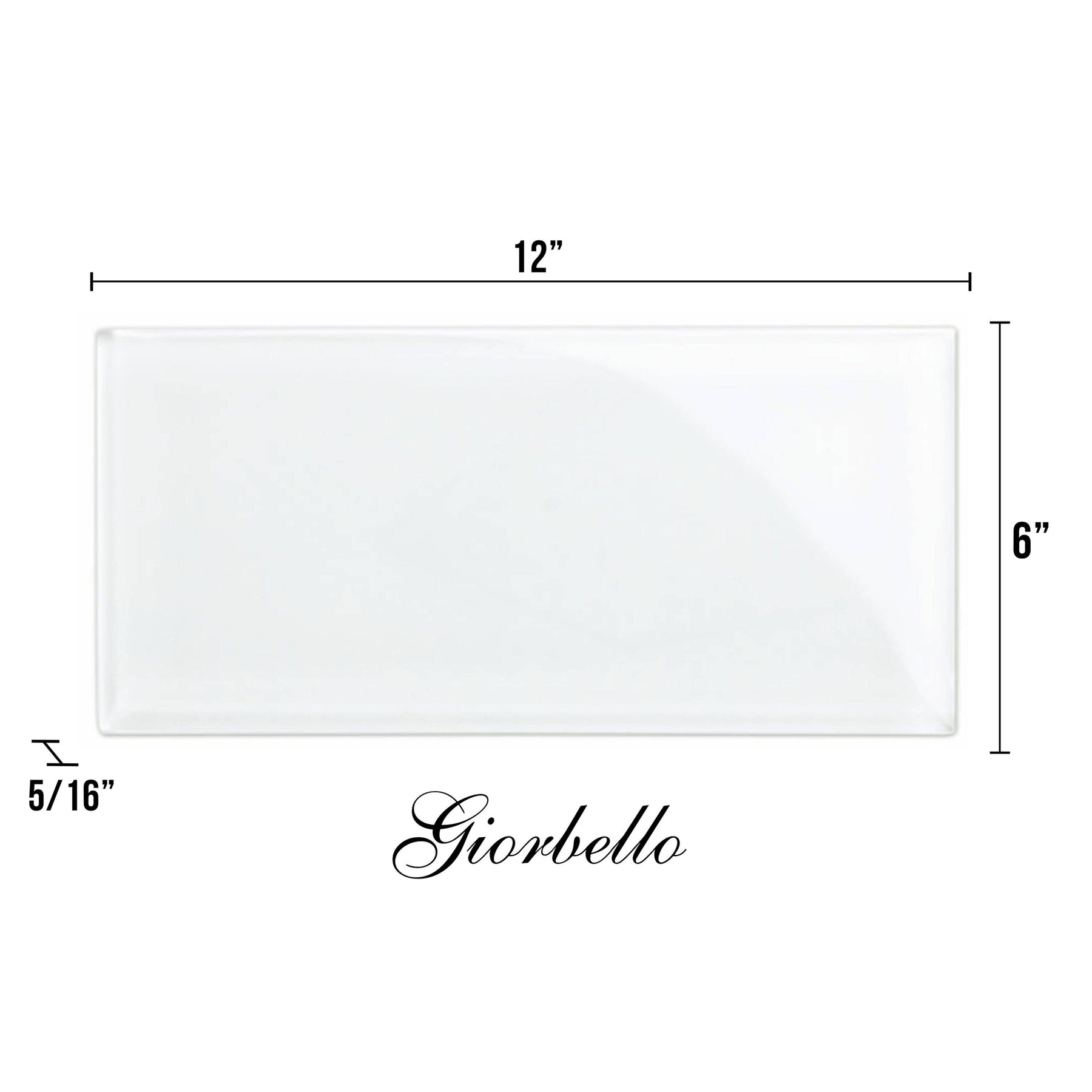 Elevate your space with Giorbello's Classic Premium Bright White Subway Tile. Crafted from ultra-glossy, eco-friendly glass, these 6x12-inch tiles offer a timeless look that enhances any kitchen or bathroom. Durable and resistant to mildew, rust, and fading, they promise both style and longevity.