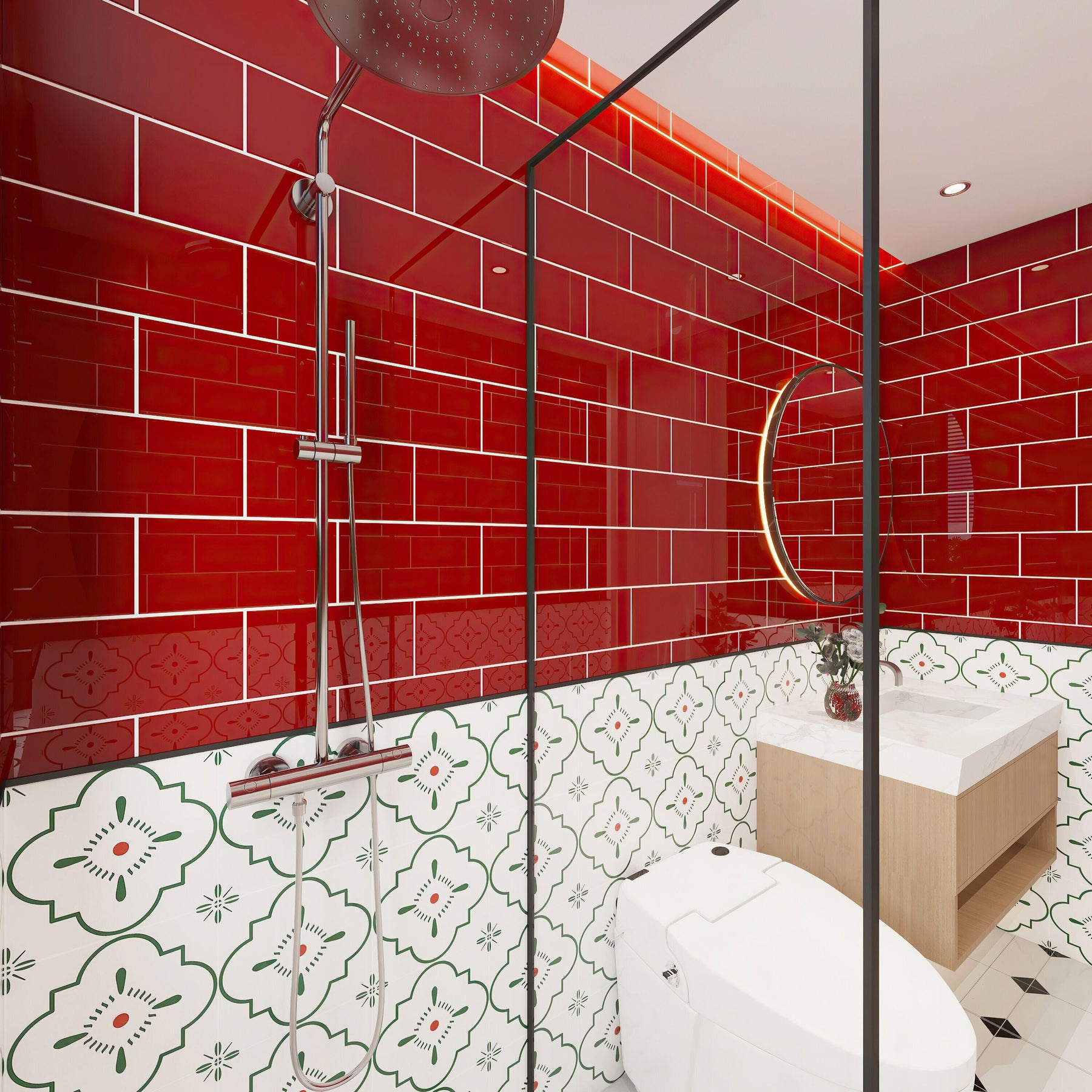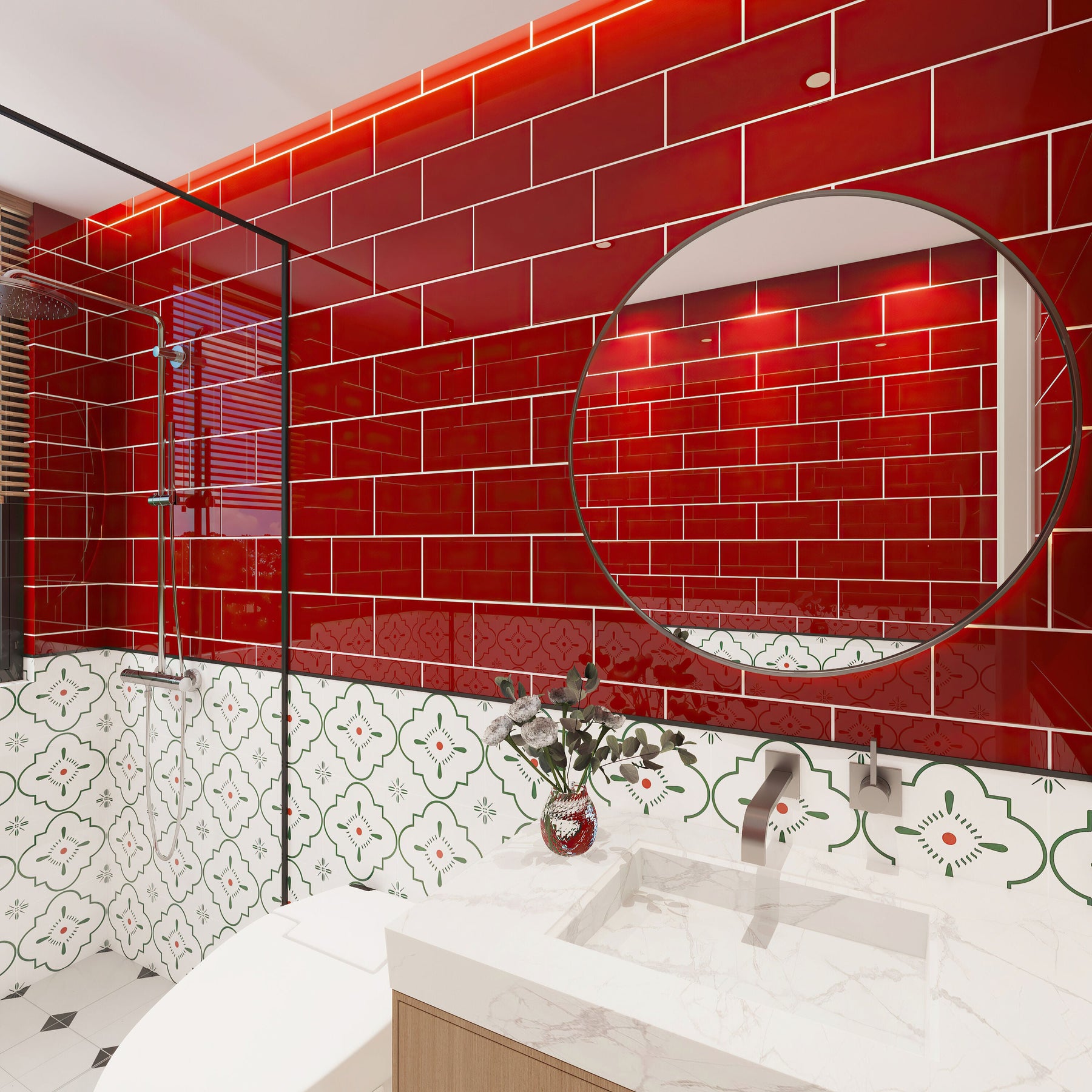 Transform your home with the dazzling Ruby Red Glass Subway Tile and let your walls speak volumes of luxury.