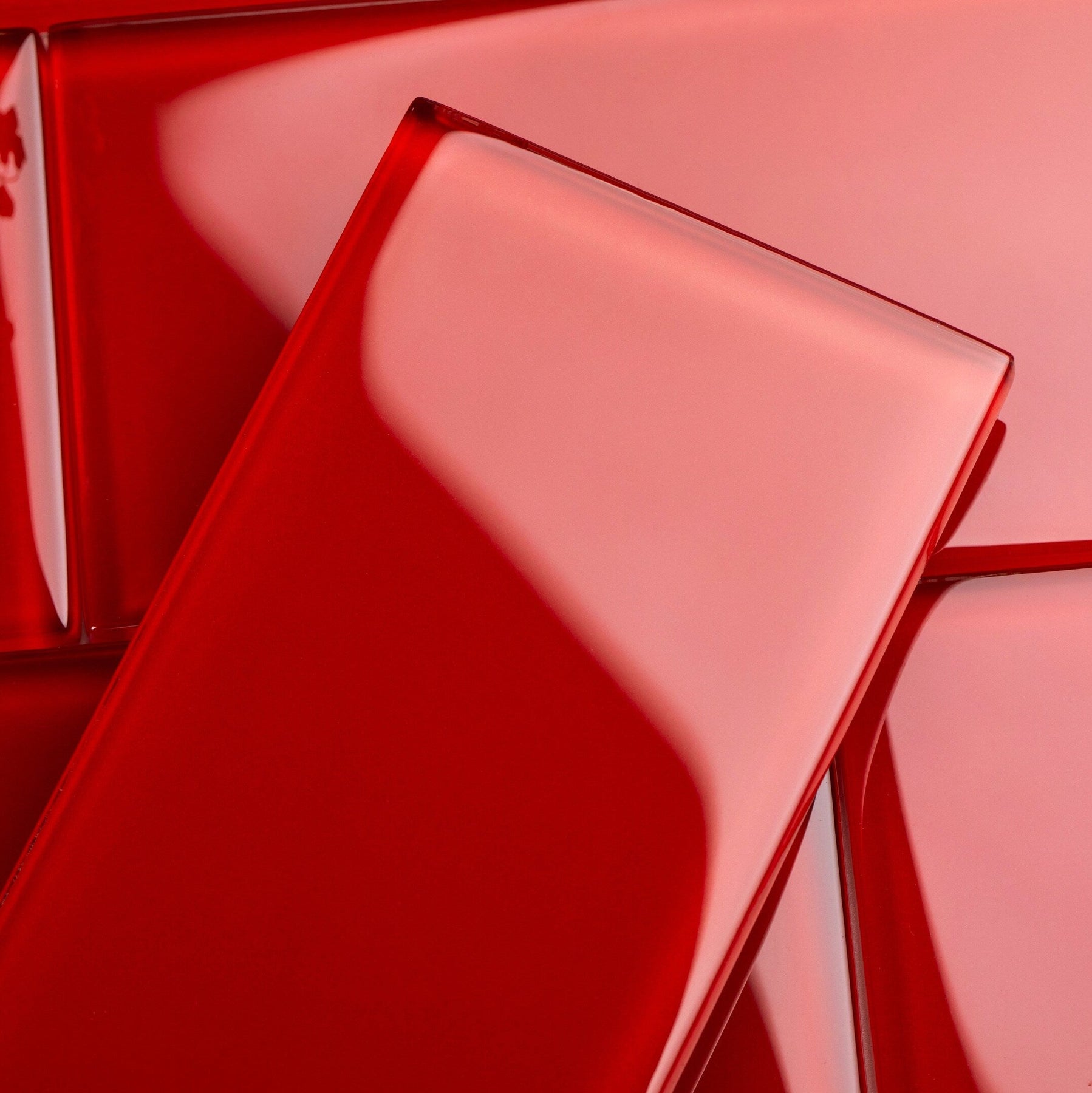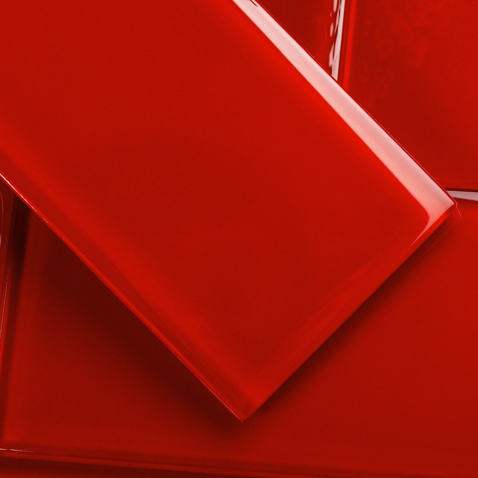 Giorbello Classic Premium Ruby Red 6-in x 12-in Glossy Glass Subway Wall Tile (5-sq. ft/ Carton)