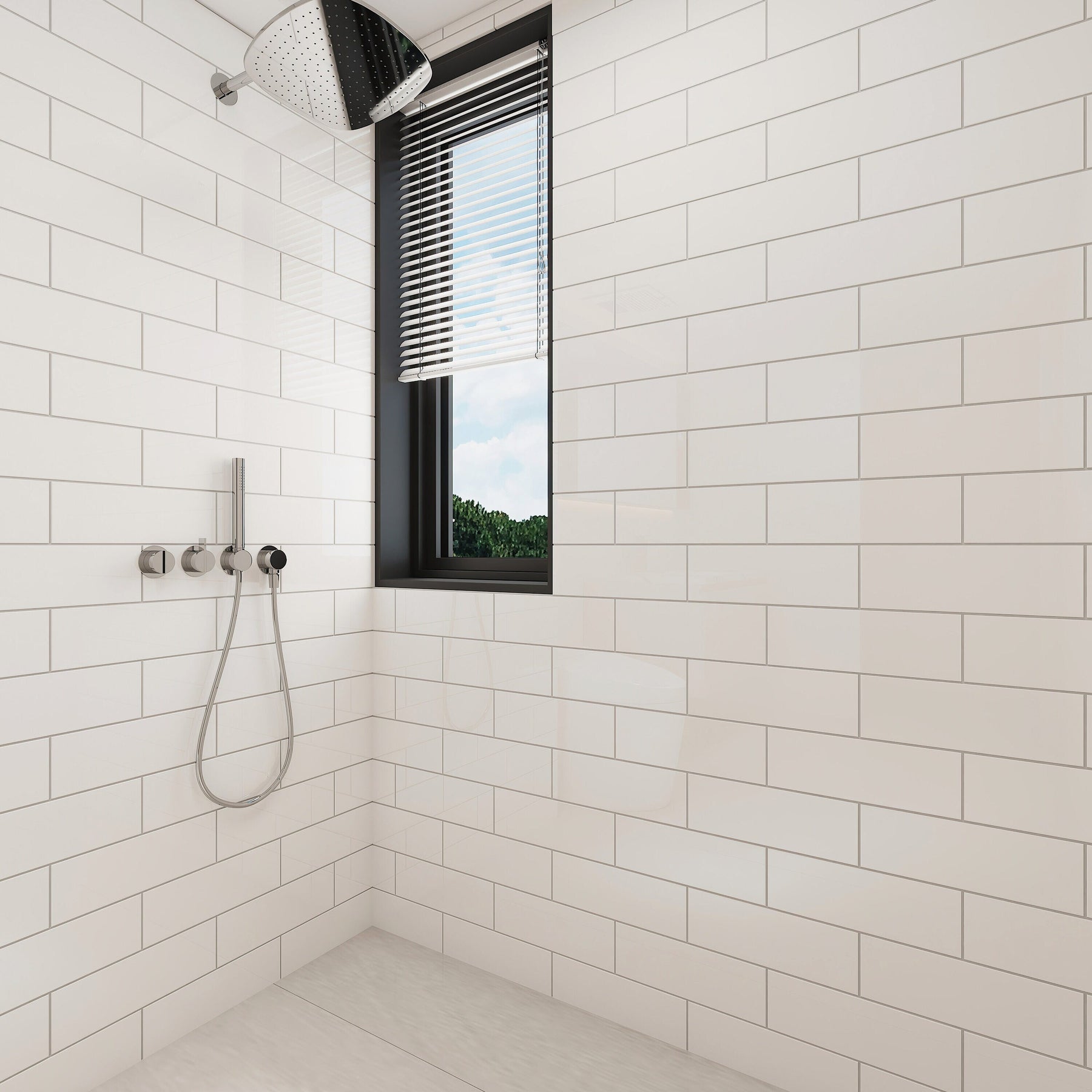 Giorbello (Sample) 4x12 glass subway tiles Alabaster White 4-in x 12-in Glossy Glass Brick Subway Wall Tile