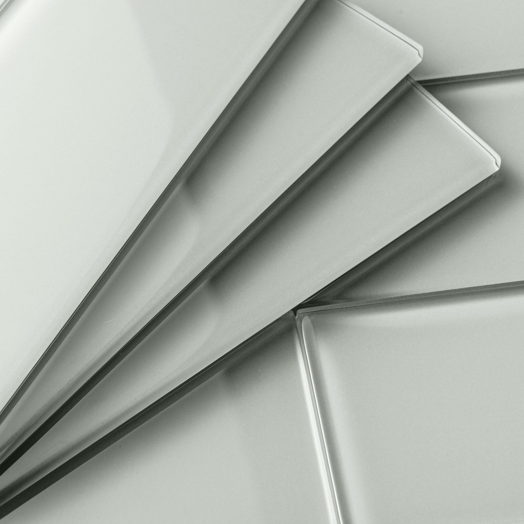 Giorbello (Sample) 4x12 glass subway tiles Light Gray 4-in x 12-in Glossy Glass Brick Subway Wall Tile