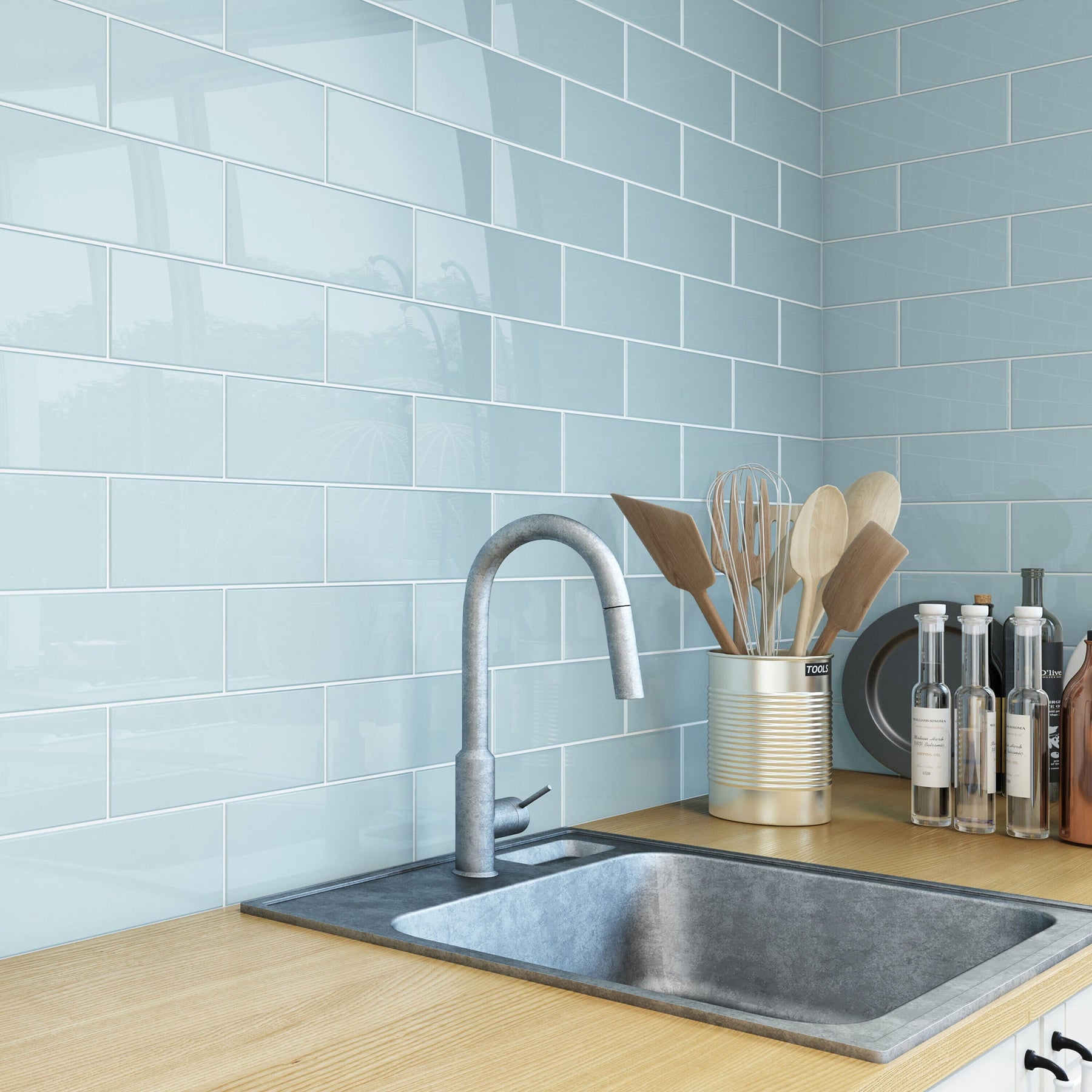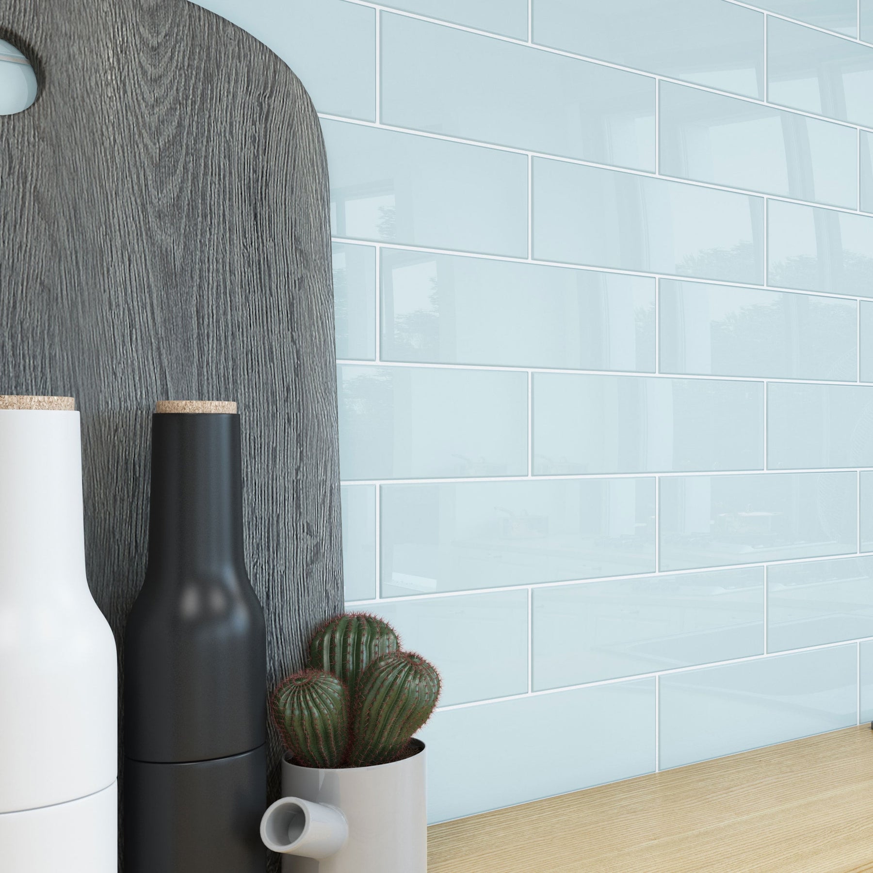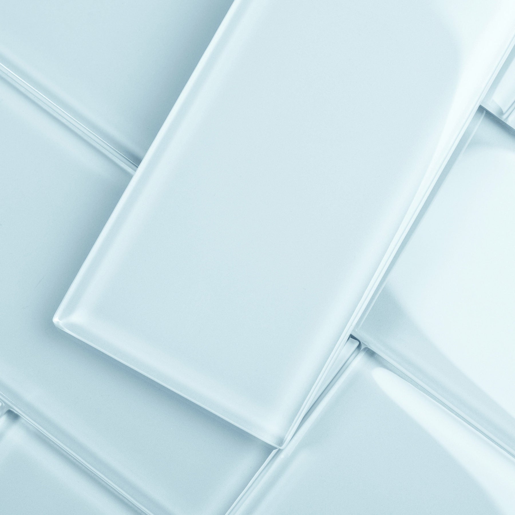 Giorbello (Sample) 4x12 glass subway tiles Morning Sky Blue 4-in x 12-in Glossy Glass Brick Subway Wall Tile
