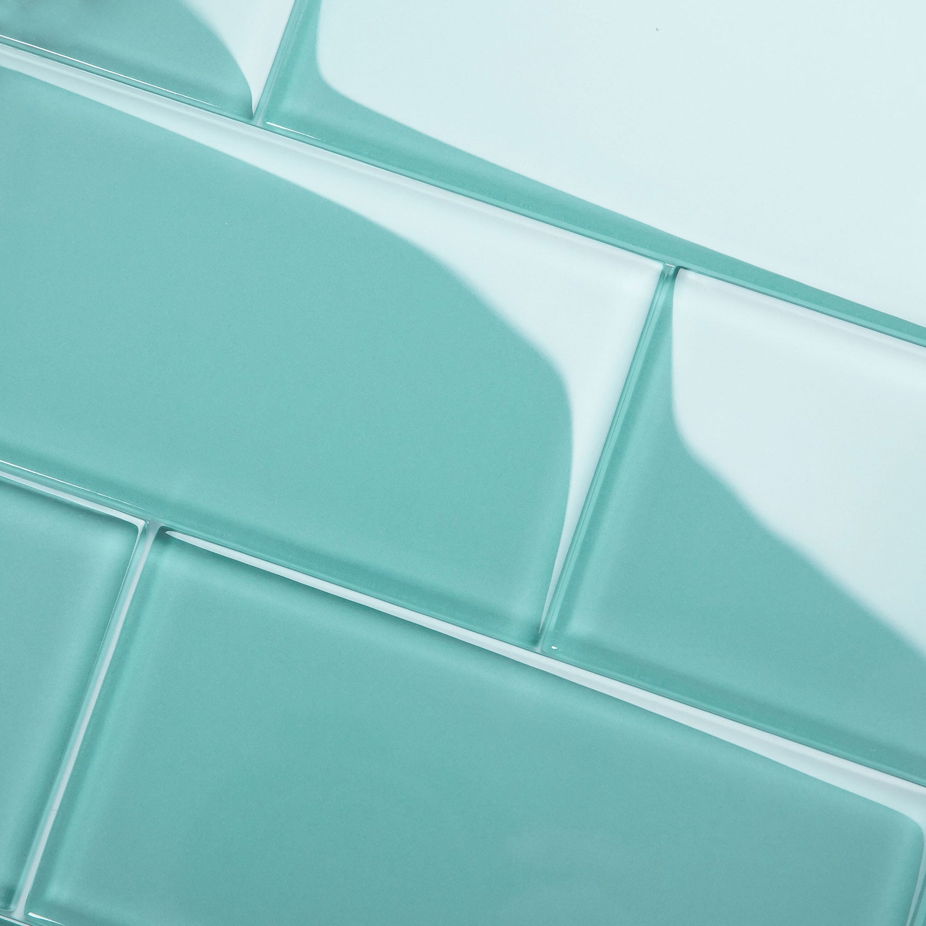 Giorbello (Sample) 6x12 glass subway tiles Teal 6-in x 12-in Glossy Glass Brick Subway Wall Tile