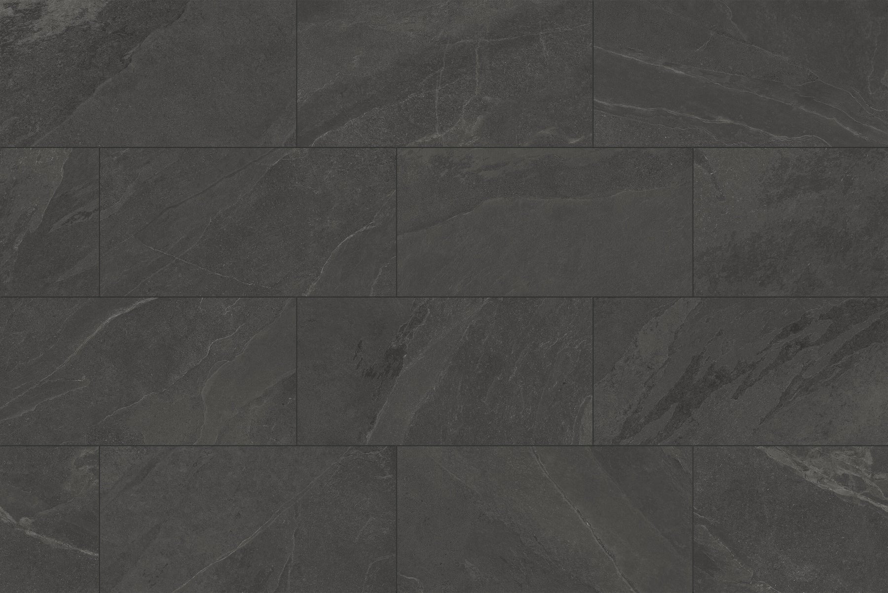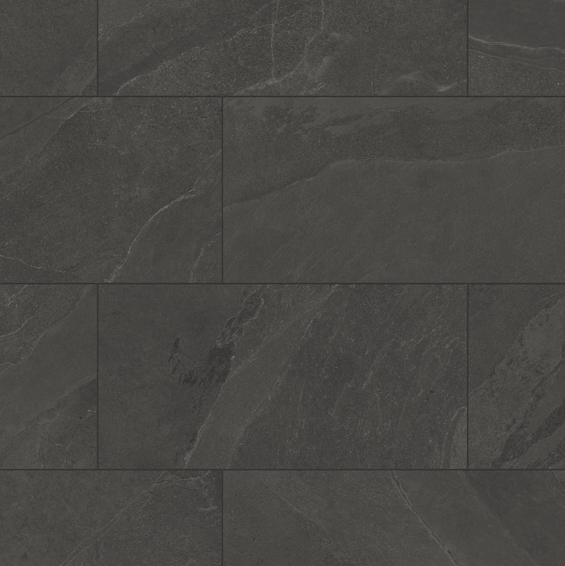 Large-format porcelain tile with a refined stone-look in deep graphite, designed for floors and walls. Its matte, smooth surface and rectified edges deliver a sleek, modern aesthetic with minimal grout lines. Impervious and durable, it suits high-traffic interiors and wet areas.