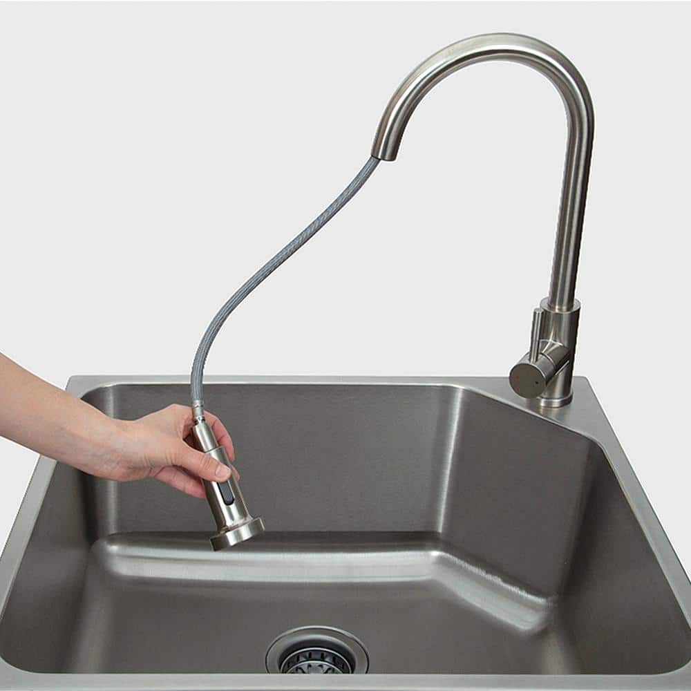 Q: Can the faucet swivel or pull out? A: Yes, the faucet features a pull-down design for added flexibility and ease of use.