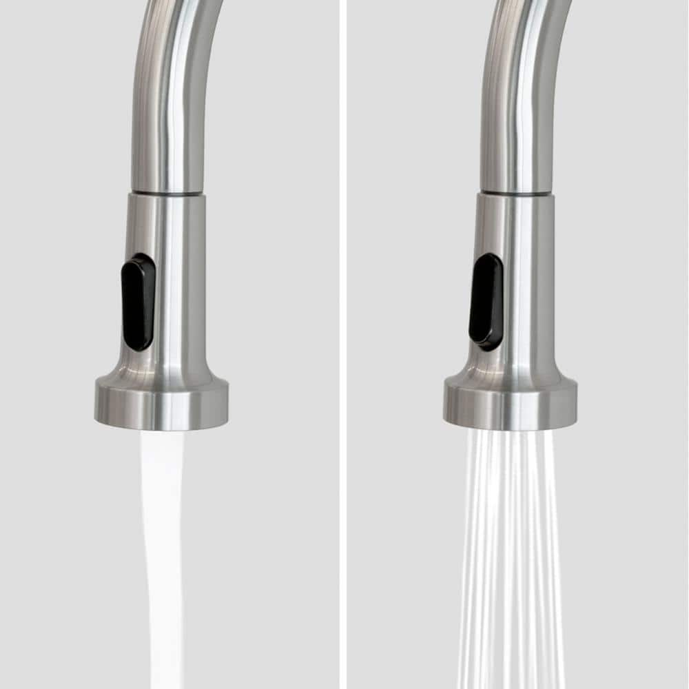 Pull-Down Faucet: Features a premium stainless steel faucet with two stream modes and a 1.8 GPM flow rate for versatile use.