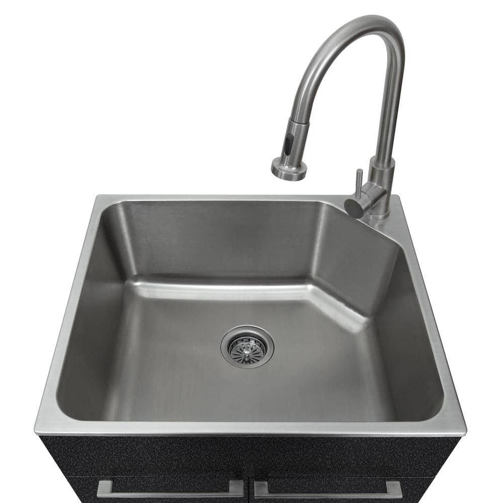 Q: What are the benefits of the stainless steel material? A: Stainless steel is durable, corrosion-resistant, and easy to clean, making it ideal for heavy-duty tasks and ensuring a long lifespan for the sink and faucet.