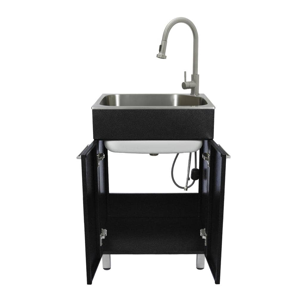 Q: What is the installation process for this utility sink and cabinet? A: The utility sink and cabinet package is designed for easy assembly and installation. Using minimal tools (primarily a screwdriver), the unit can be set up quickly. Detailed instructions are included for a straightforward assembly.