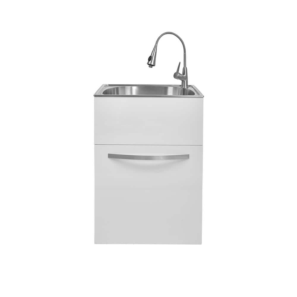 Stainless Steel Laundry Sink with Faucet and Cabinet
