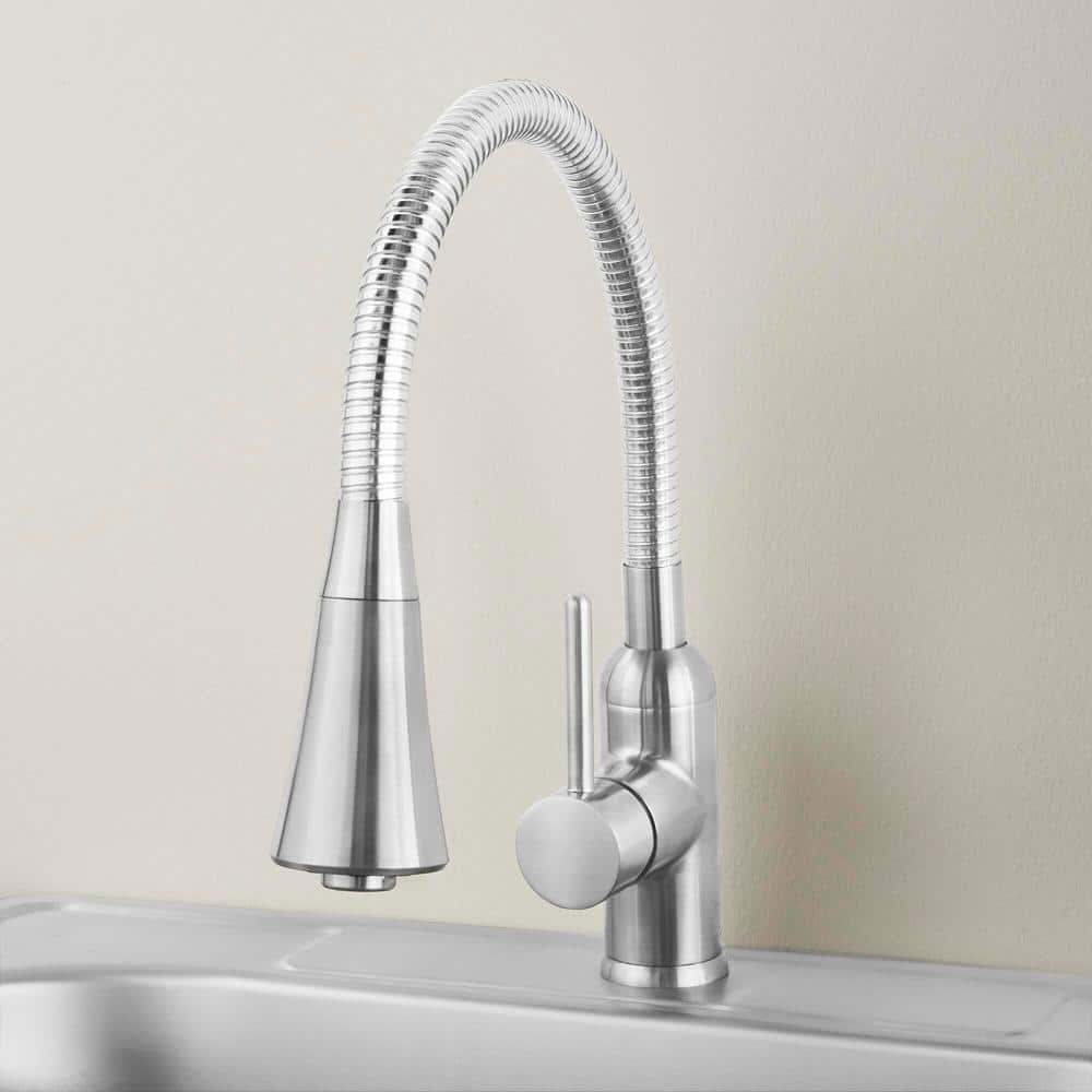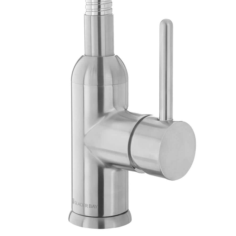 Upgrade your laundry room with the Glacier Bay Bodell Single-Handle Pulldown Laundry Faucet in Stainless Steel. With a high-arc spout and easy maneuverability, this faucet offers exceptional reach and stain-removing power through its Turbo Spray setting, while ceramic disc valves ensure lasting, drip-free use.
