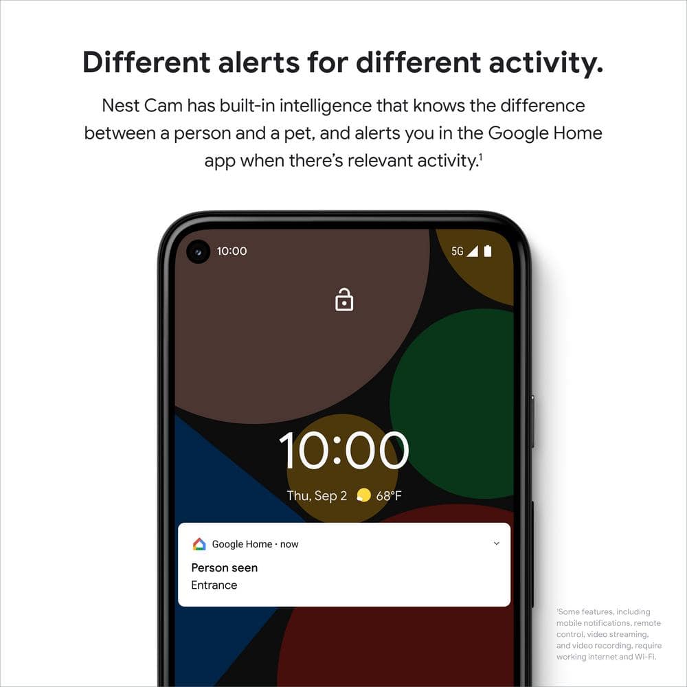 Smart Alerts: Differentiates between people and pets, providing you with relevant notifications.
