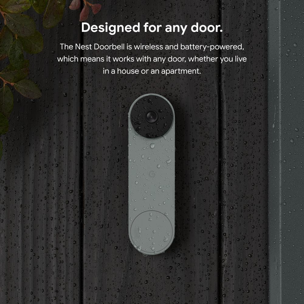 Enhance your home security with the Google Nest Doorbell (Battery). It's completely wireless and easy to install, delivering high-quality video directly to your mobile device. With intelligent alerts distinguishing between people, animals, and packages, you'll always know exactly who or what is at your door.