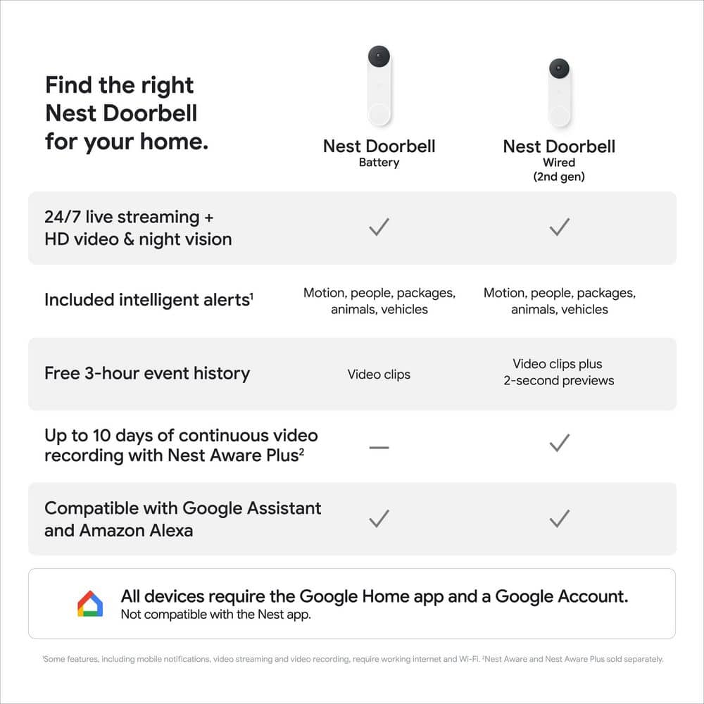 The Google Nest Wired Video Doorbell (2nd Gen) is designed for 24/7 front door monitoring. With intelligent alerts distinguishing between people, packages, animals, and vehicles, you stay informed in real-time. Experience seamless video management through the Google Home app and enjoy peace of mind with 3 hours of event video history without a subscription.