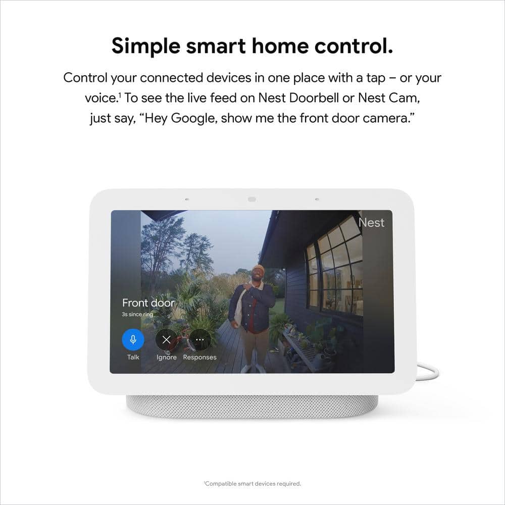 Environmental Conscious Design: The Nest Hub features a design with 54% recycled plastic for eco-friendly style.