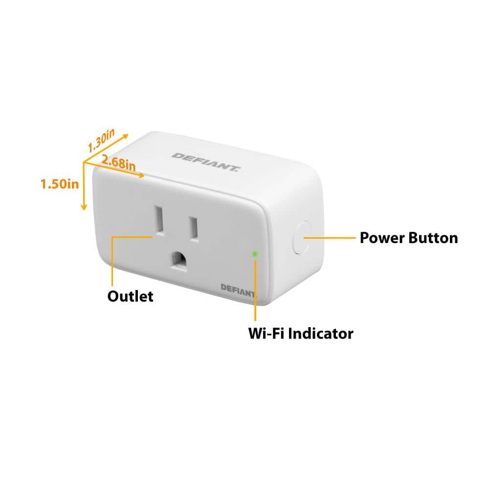 Q: Can I use the smart plug in outdoor conditions? A: No, the Defiant Smart Plug is designed for indoor use only. It is suitable for household appliances, lamps, and other electronics inside your home.