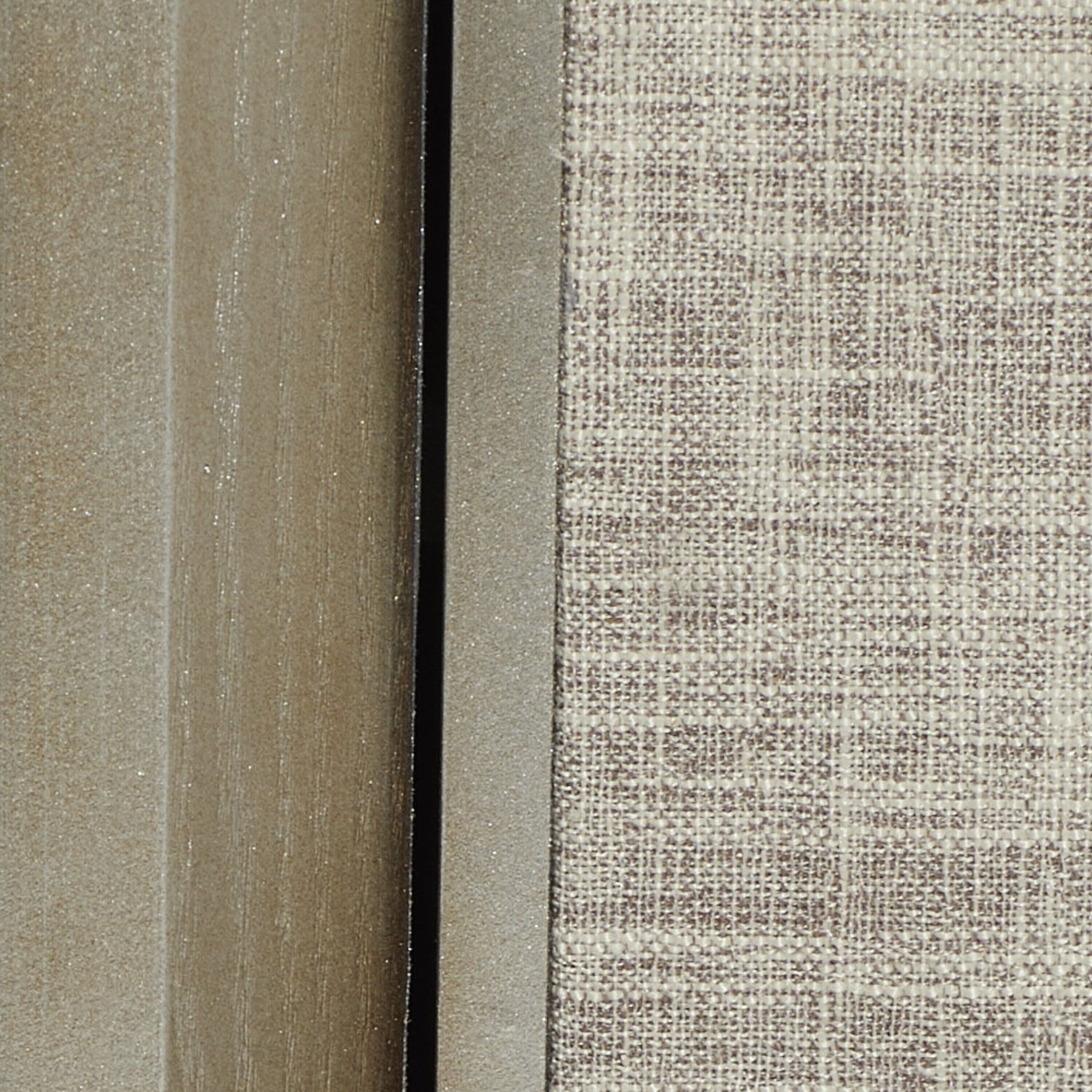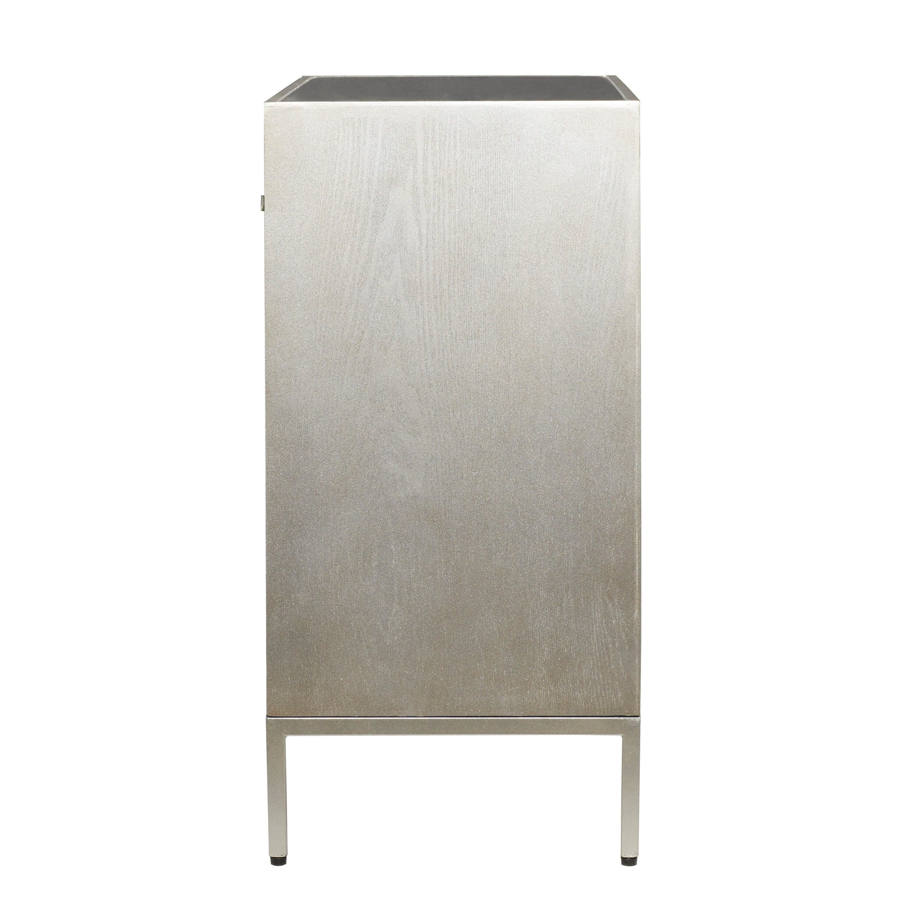 Elegant Design: Features a light metallic champagne frame with beige upholstered doors and polished silver ring handles.