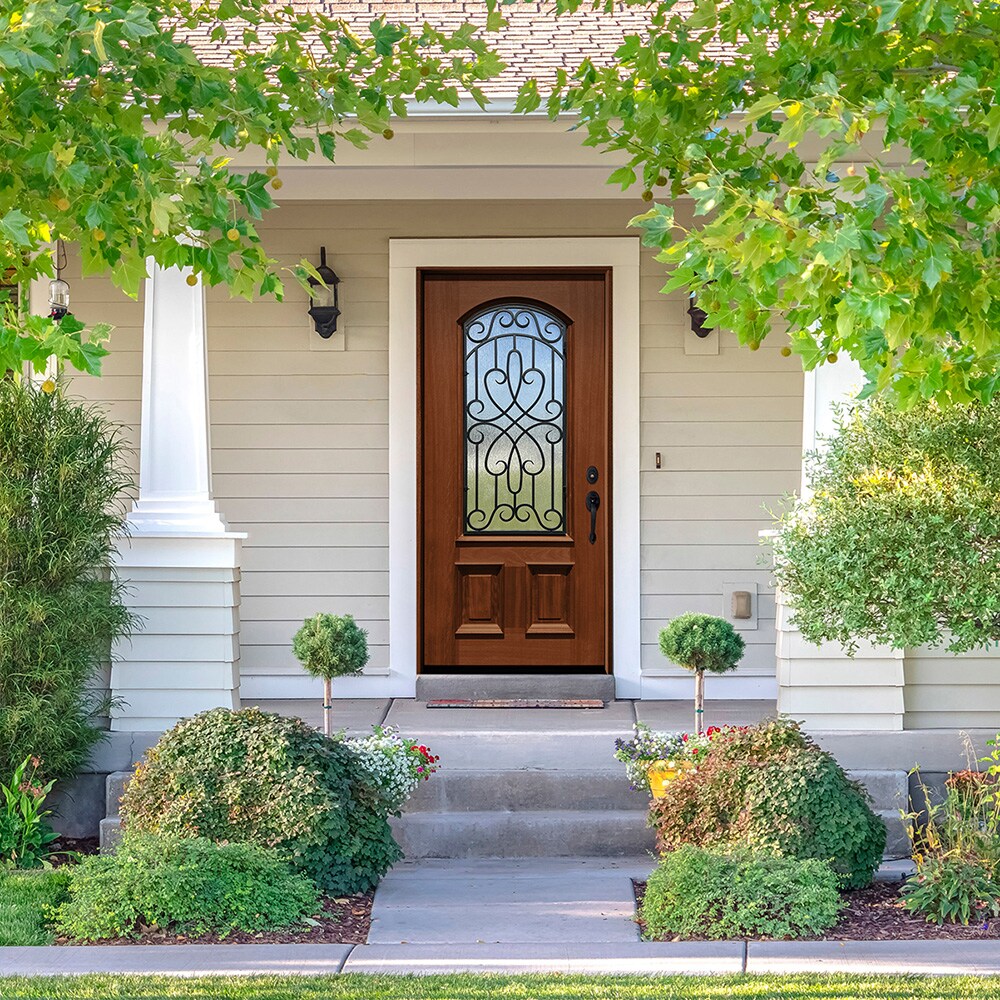 The Greatview Doors Mahogany Prehung Front Door is an iconic piece that transforms any entryway into a statement of understated elegance. Its rich mahogany tones complement the intricate 3/4 lite iron grill, inviting both grandeur and privacy to your threshold. Ideal for pairing with wrought iron accents or lush greenery for a touch of sophistication, this door exemplifies the pinnacle of luxurious living. Embrace the blend of classic design and modern function to redefine your home's facade.