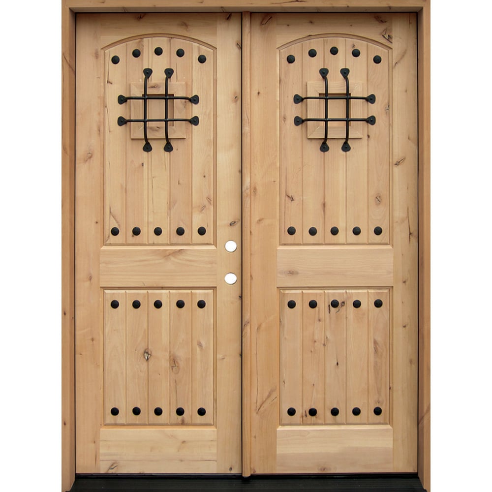Greatview Doors Knotty Alder Prehung Double Front Door, 60x80 in