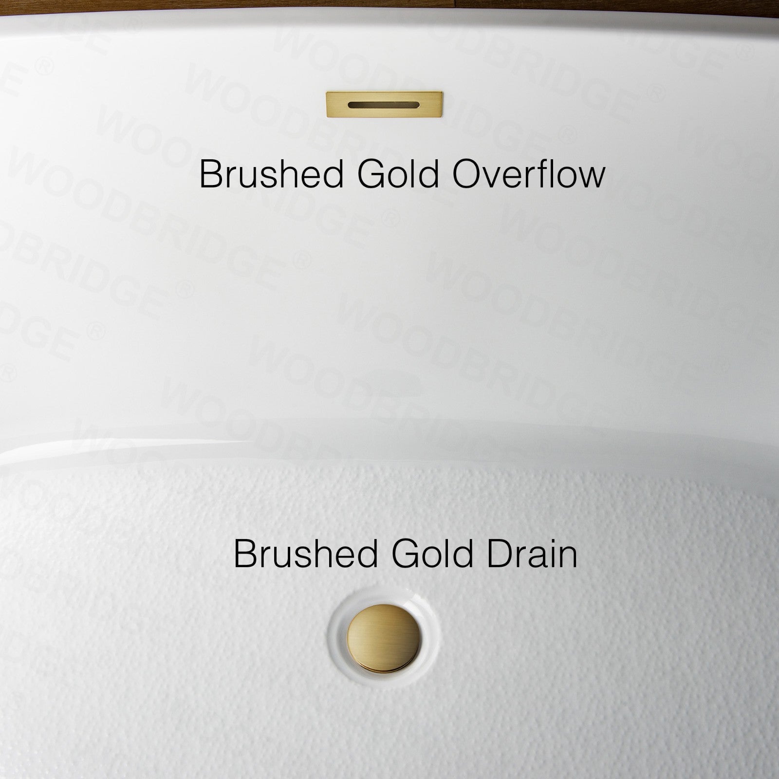 - Integrated Sealed Drain System: Brushed gold overflow and drain with sealed design to help prevent leaks