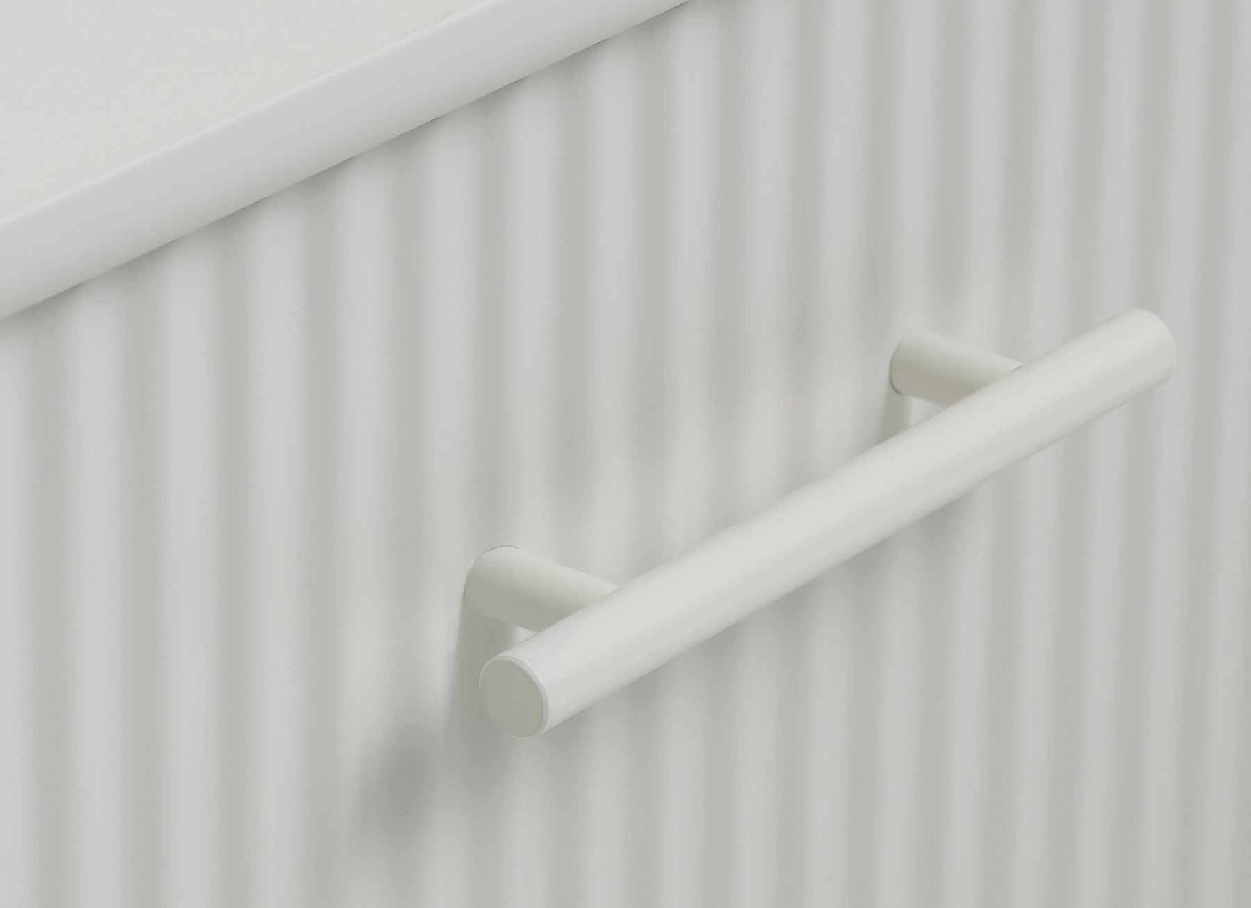 Storage: Features two doors and a drawer with grooved wood fronts for ample storage space.