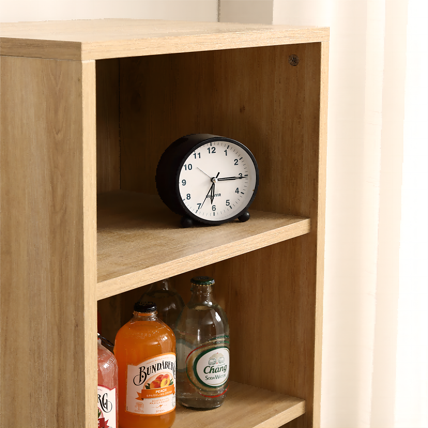 • Finish: Light brown oak finish enhances natural room warmth.