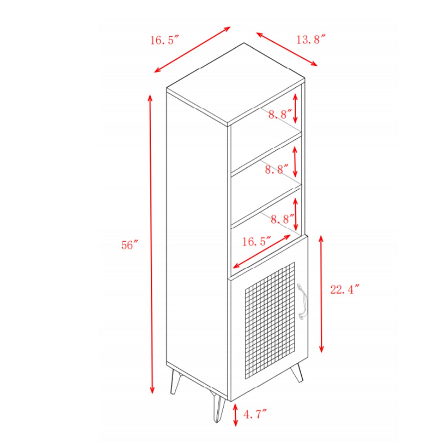 • Storage: Ample space to organize items with 4 shelves and sleek compartments.