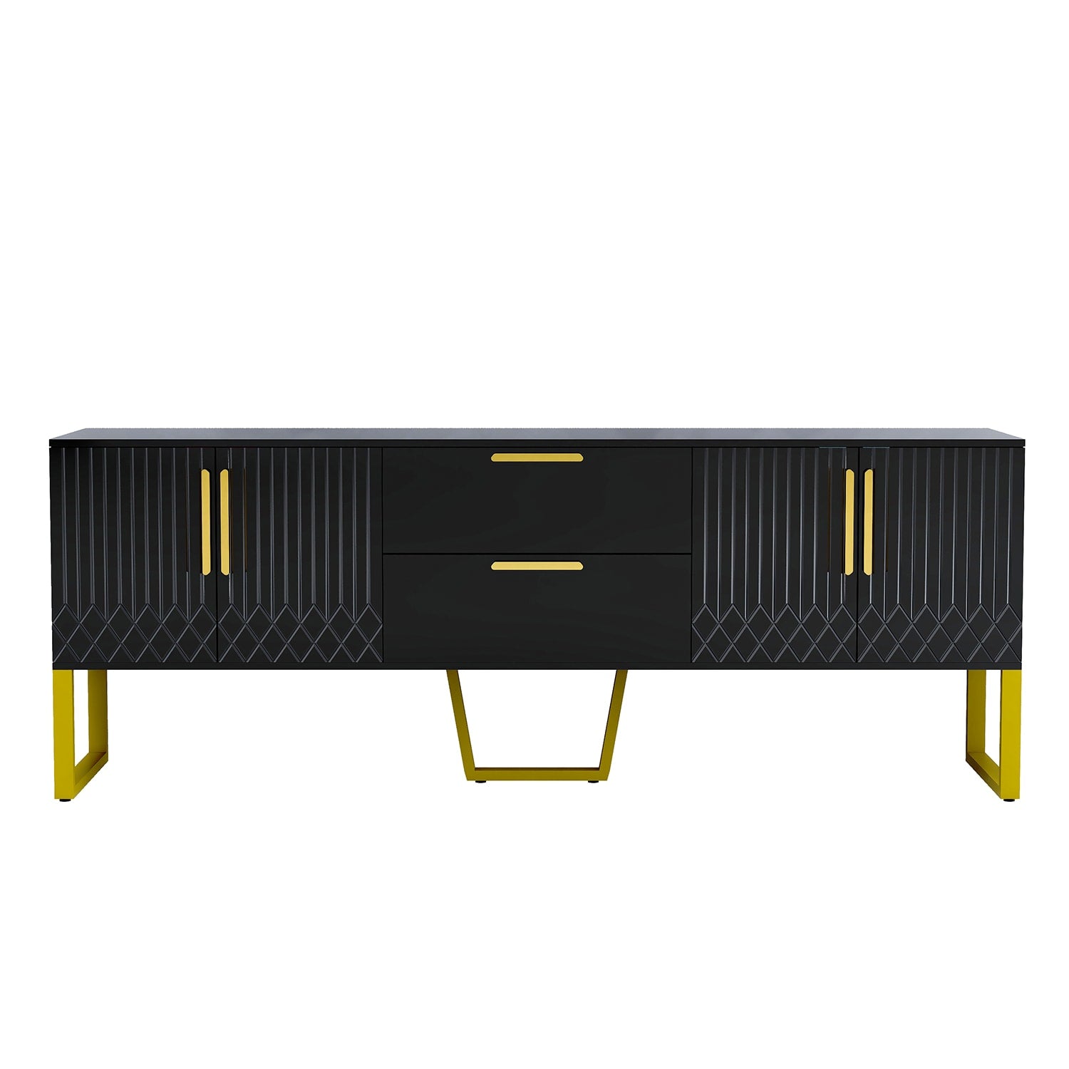 Elevate your living space with the sleek GZMR Modern Black TV Cabinet, designed for TVs up to 70 inches. This elegant piece offers ample storage with its ultra-large drawers and cabinet, while sturdy stainless metal legs provide lasting support. Perfect for any contemporary home, this cabinet combines functionality with a light luxury aesthetic.