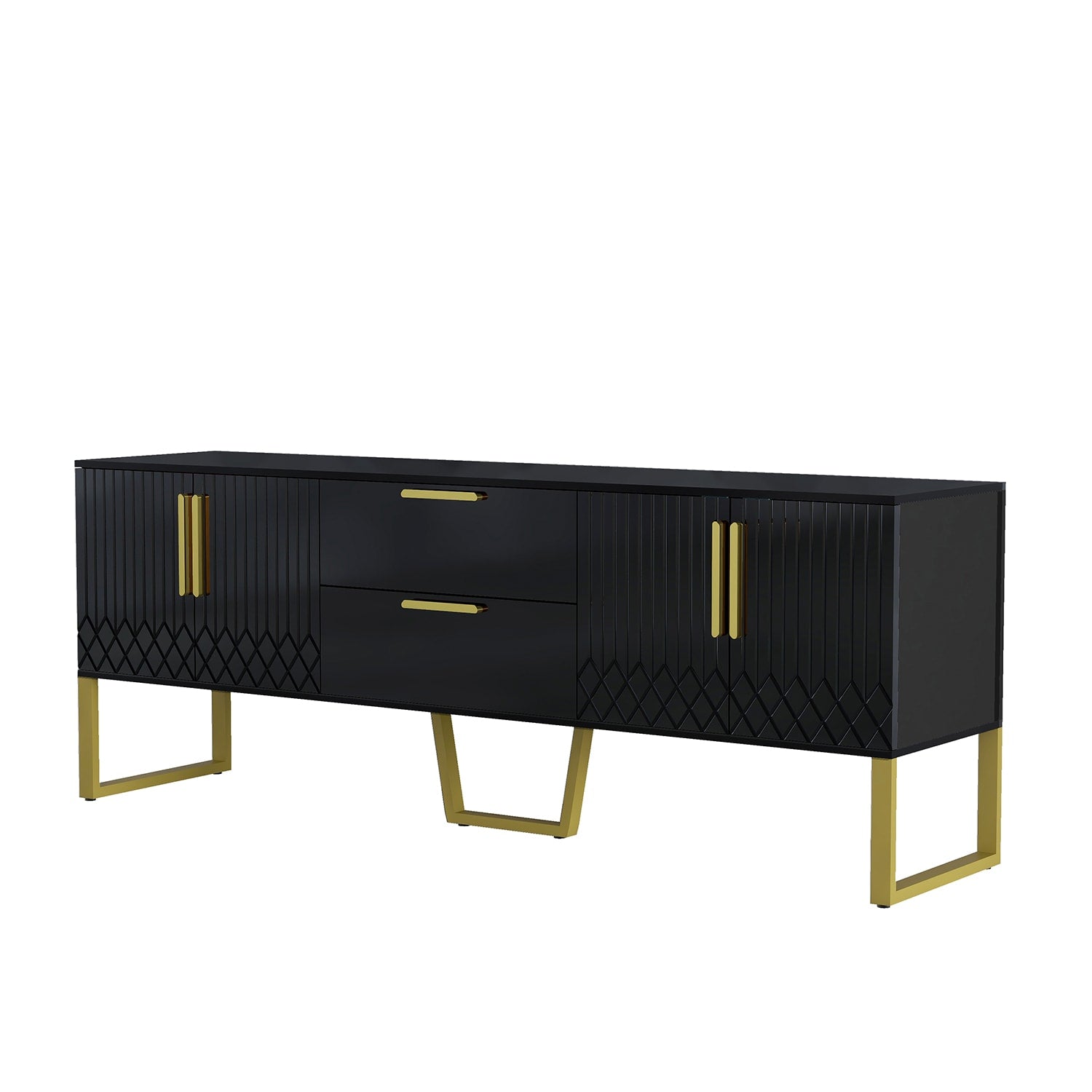 GZMR Modern Black TV Cabinet with Drawers