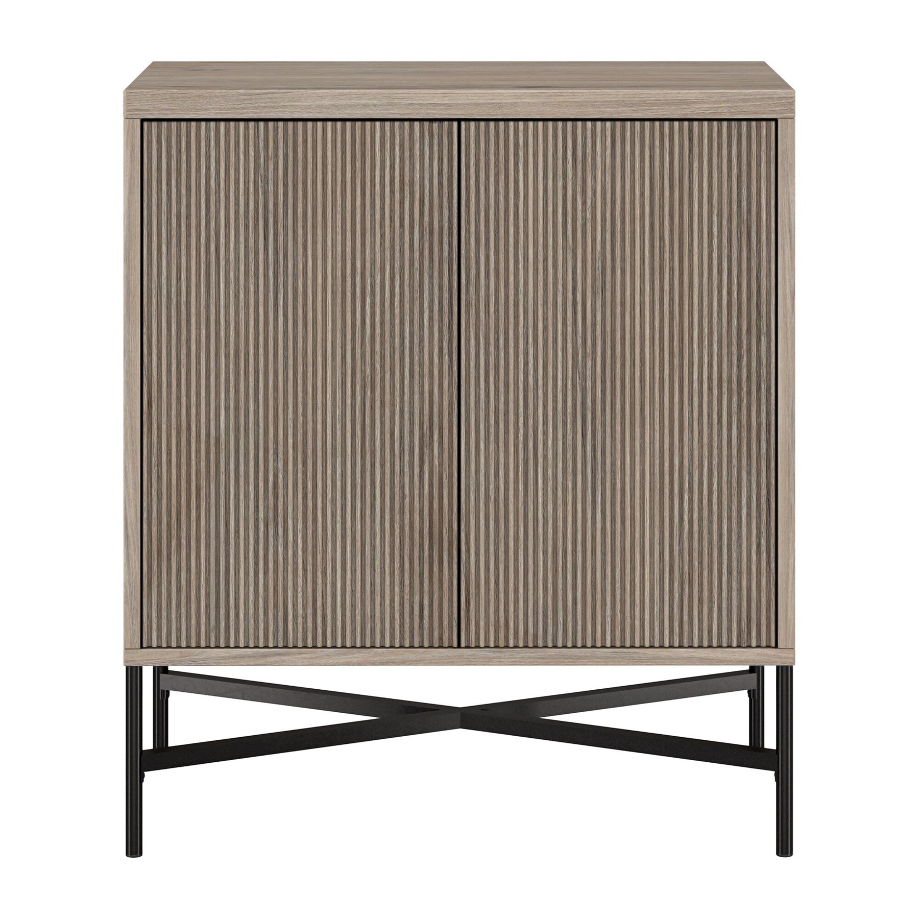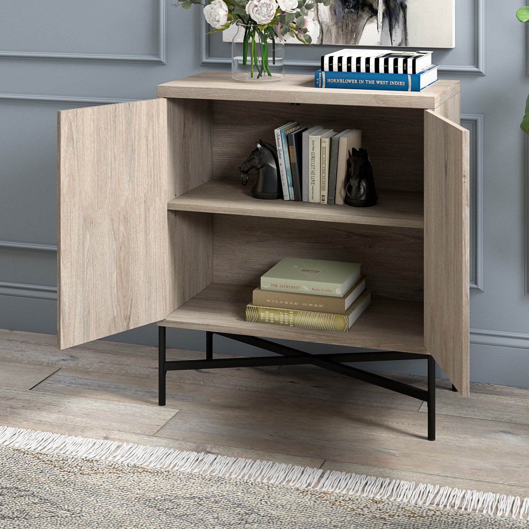 Unite modern style with functional storage in the Brighton Antiqued Gray Oak 2-Shelf Office Cabinet. This sturdy piece features two swing-out doors with a textured finish, an adjustable shelf, and a cable management cut-out, making it ideal for organizing your home office or living space. Elevate your decor with its elegant antiqued gray oak design.