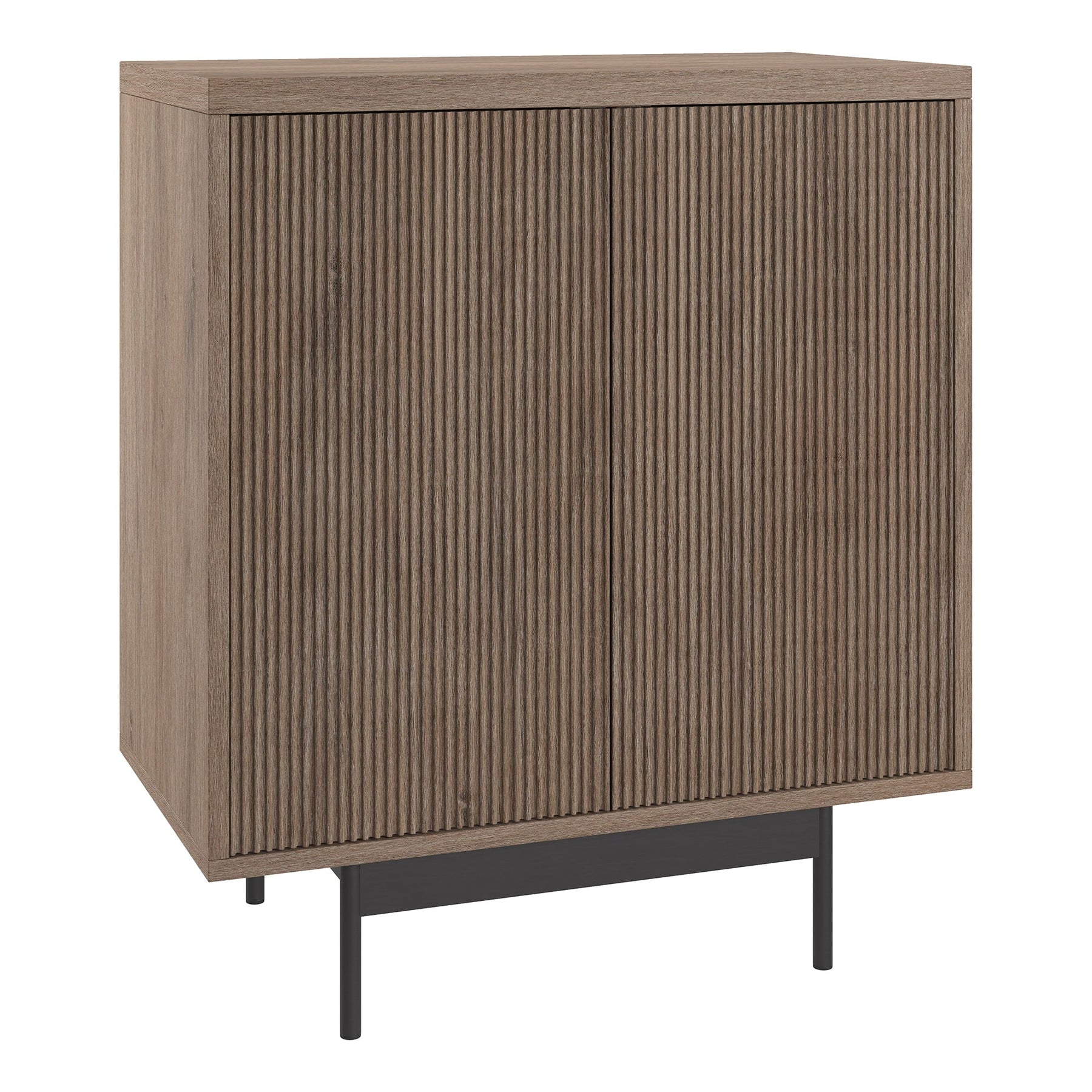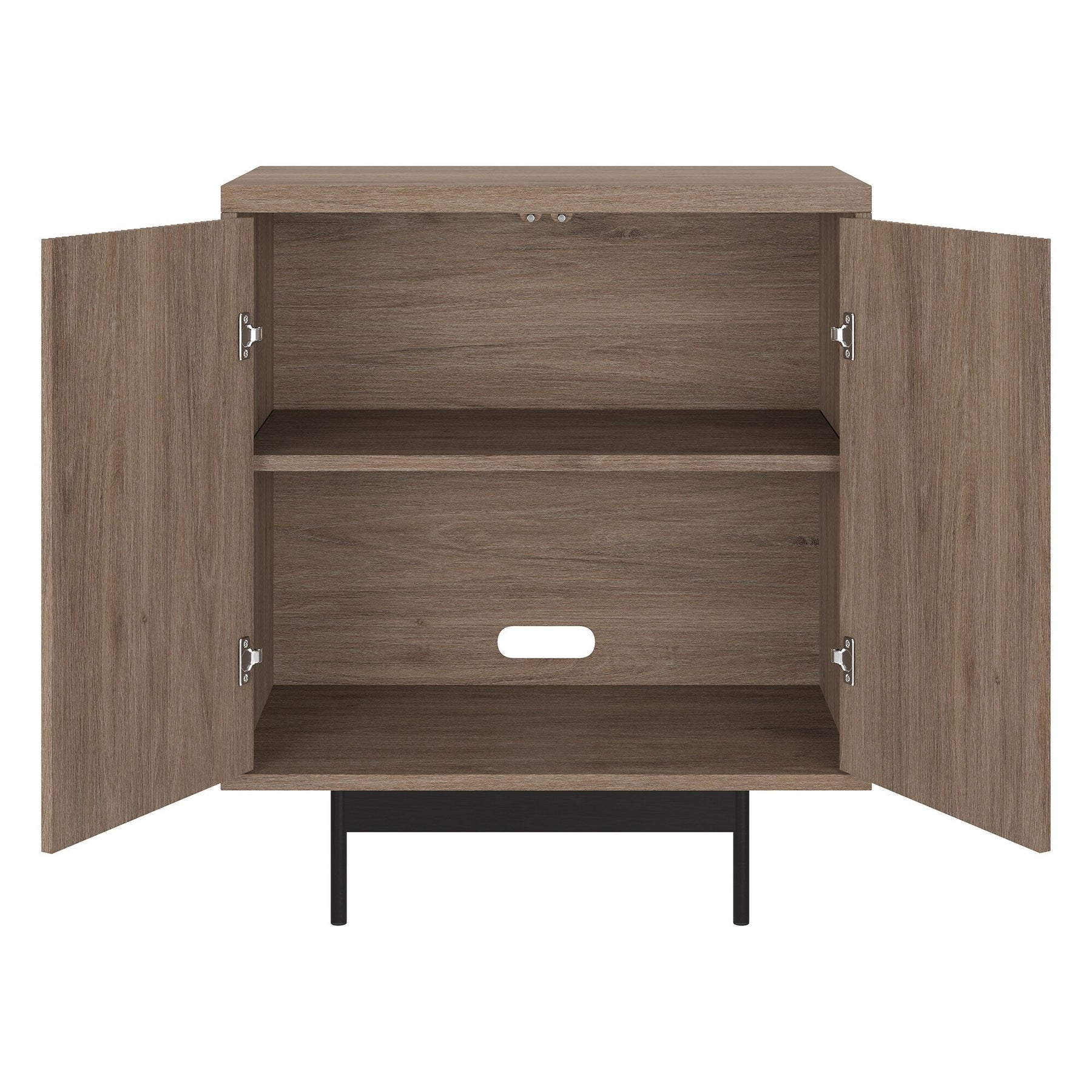 The Whitman Office Cabinet boasts an antiqued gray oak finish, blending modern design with practical functionality. Ideal for organizing your home office or living room, this sturdy MDF cabinet features adjustable shelving and a cable cut-out for easy device management.