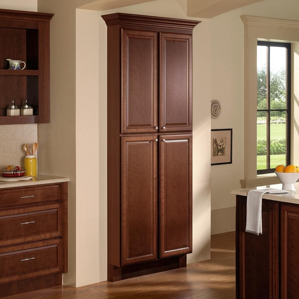 Upgrade your kitchen with the Hampton Bay Cognac Pantry Cabinet—order now to combine style and functionality in your home.