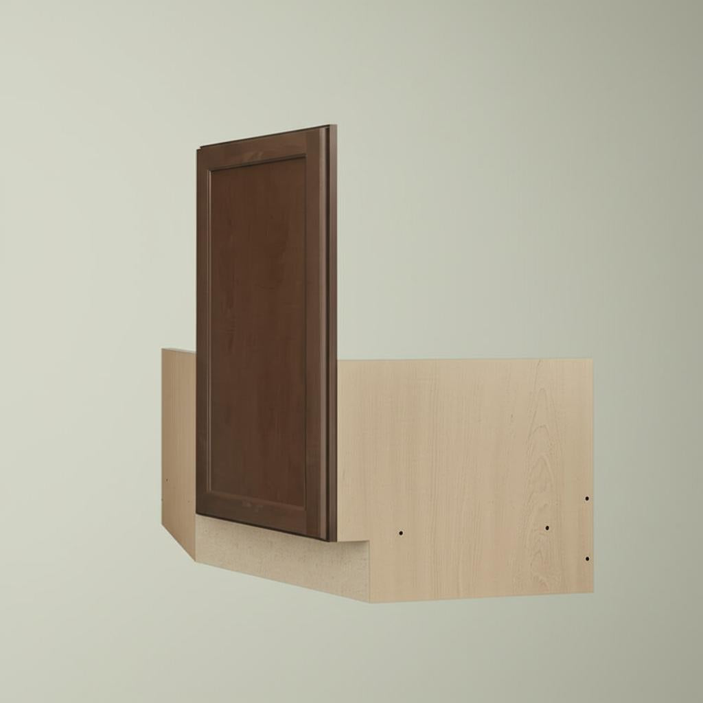 This corner cabinet is a masterpiece of modern elegance, with its rich brindle finish and shaker design that seamlessly blends simplicity with sophistication. It transforms a kitchen corner into a functional yet stylish focal point, complementing natural stone countertops and metallic hardware for a chic aesthetic. Perfect for creating a luxurious culinary space, this cabinet is both practical and visually stunning.