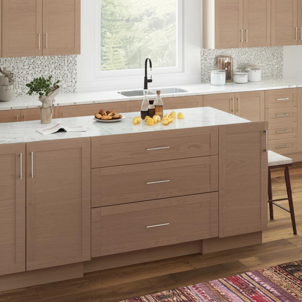 - Elegant Design: Shaker door profile complemented by a rich, light oak finish.