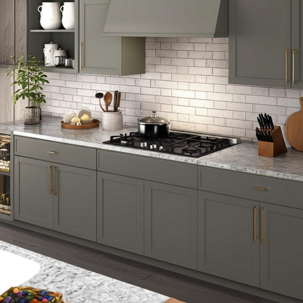 - Full-Overlay Shaker Design: Timeless style with clean lines and a smooth gray finish.