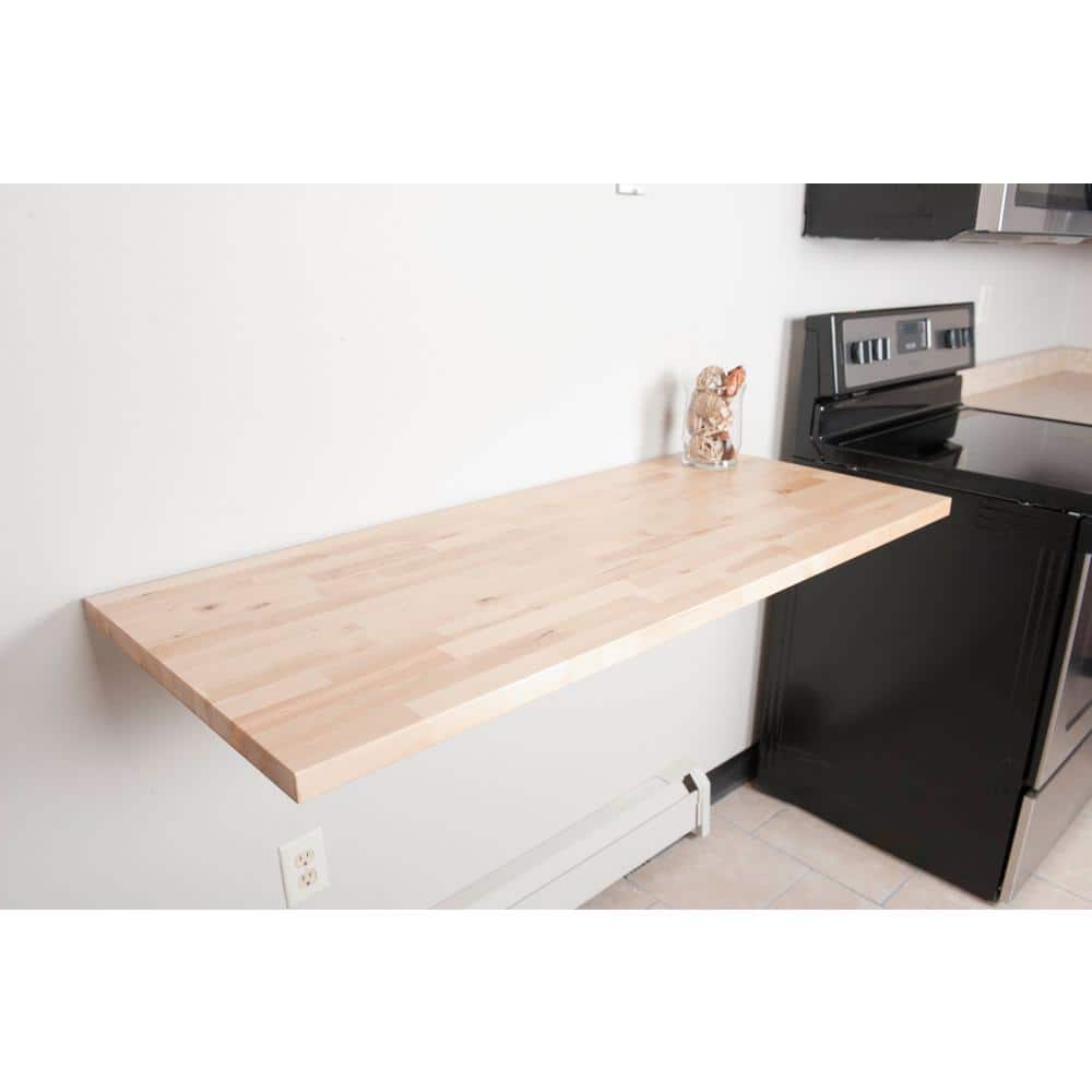 Elevate your space with the HARDWOOD REFLECTIONS Finished Hevea Solid Wood Butcher Block Countertop. This folding countertop is perfect for small areas, offering functionality without sacrificing style. The durable UV finish and sturdy steel brackets make it an ideal choice for adding practical elegance to your home or workspace.