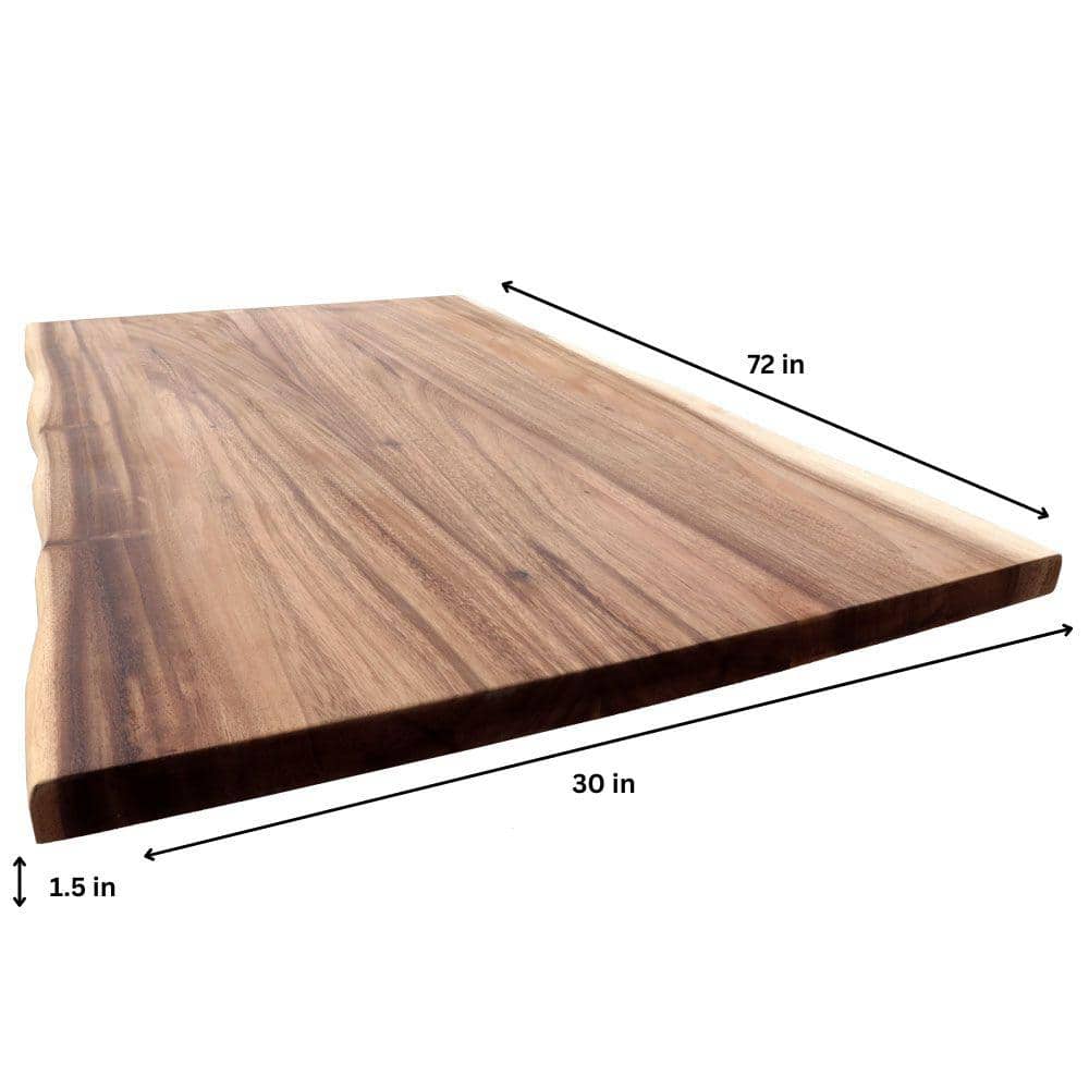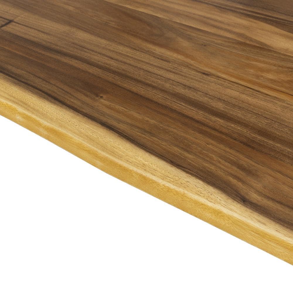 Transform your living space with Hardwood Reflections' 6 ft. Saman Solid Wood Butcher Block, featuring a stunning live edge for a natural aesthetic. Made from 100% solid Saman wood, this eco-friendly piece offers unmatched durability and customization potential. Ideal for any room, its unique grain and color variations ensure every install is one-of-a-kind.