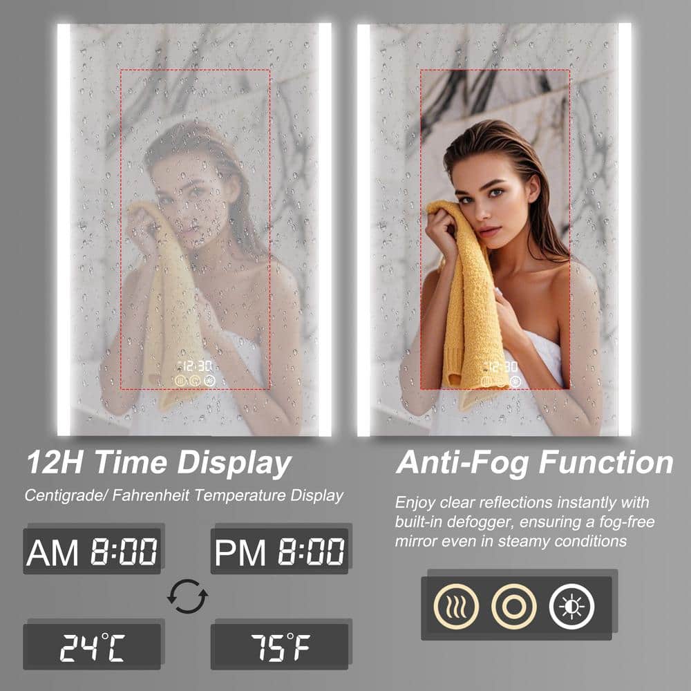Q: Does the anti-fog feature require manual activation? A: No, the anti-fog feature is automatic, ensuring a clear mirror surface at all times without manual intervention.