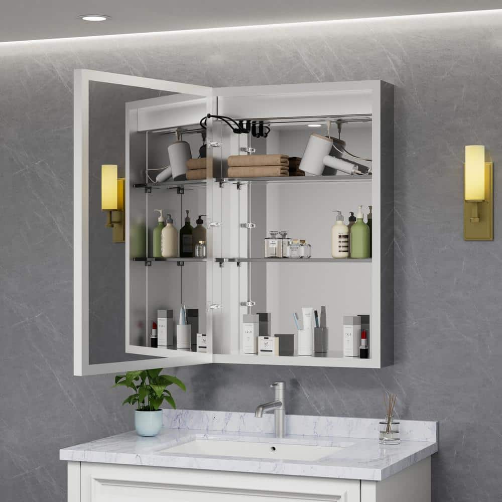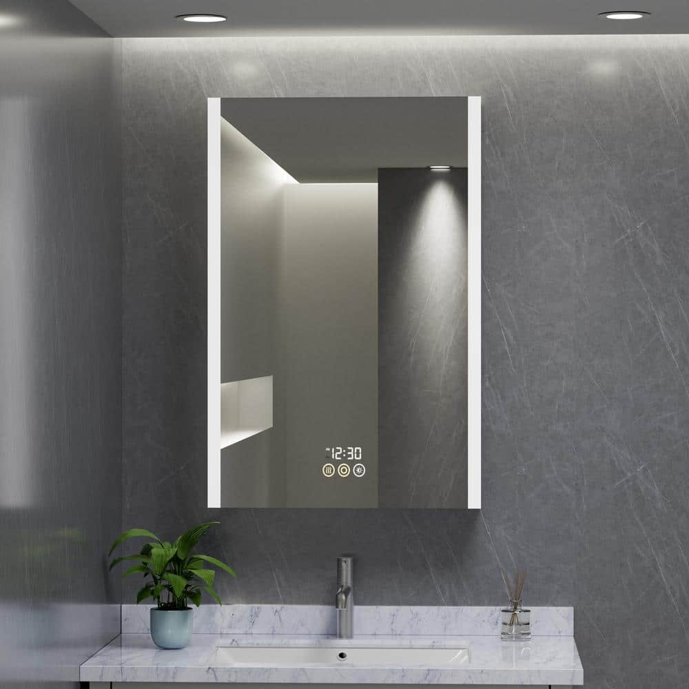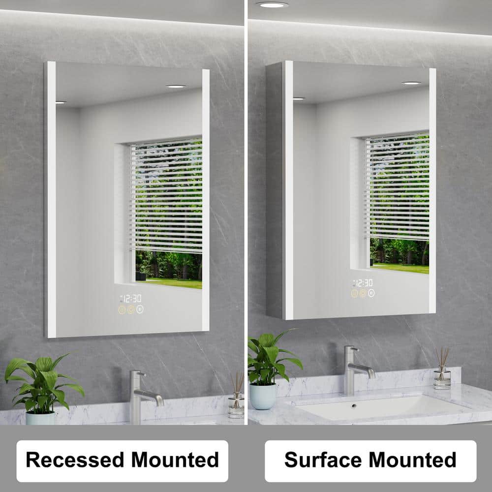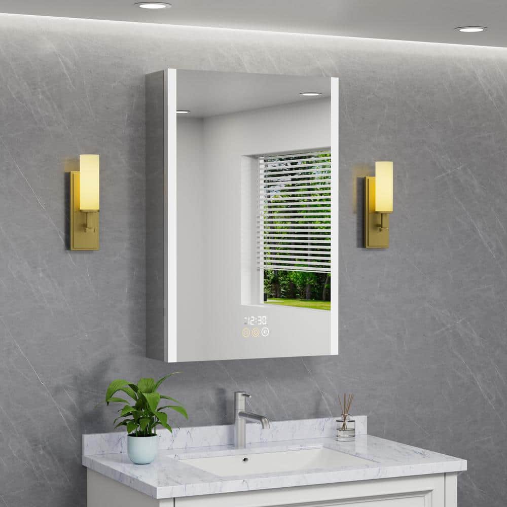 Elevate your bathroom with the HBEZON Eos Medicine Cabinet, featuring tri-color LED lighting for impeccable ambiance and an anti-fog mirror for clarity in any condition. This cabinet combines functionality with elegance, offering flexible storage solutions and smart features like a digital clock and USB ports to enhance your grooming experience.