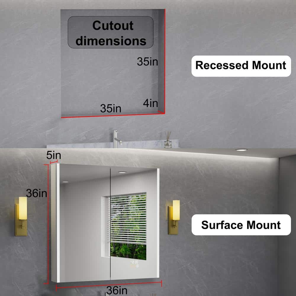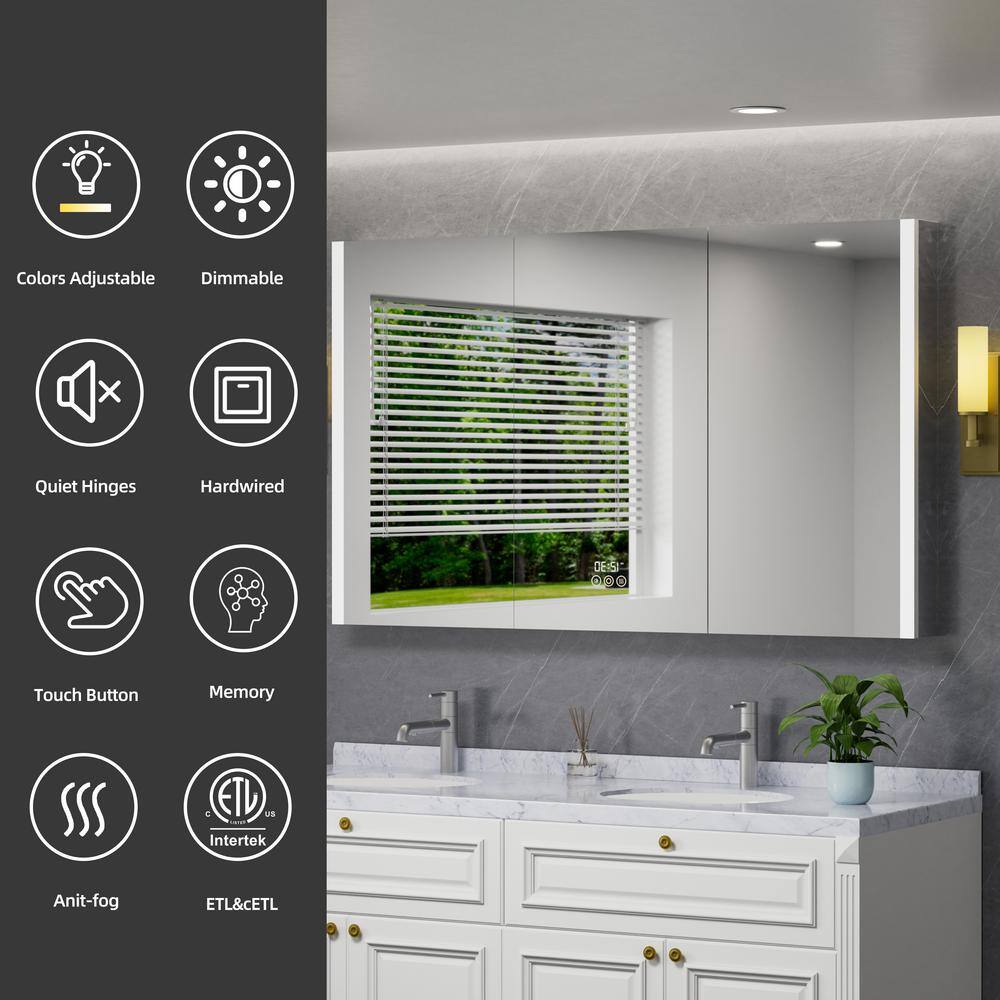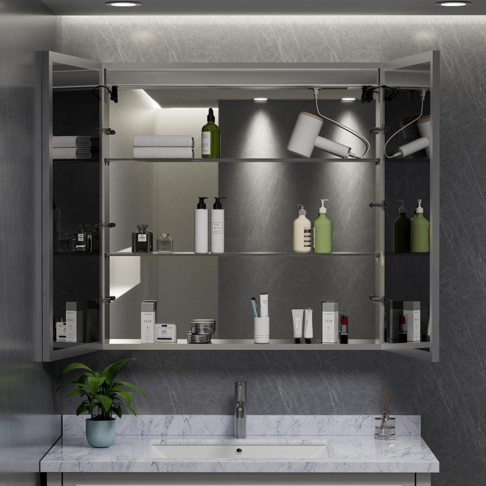 Elevate your bathroom space with the HBEZON Eos Medicine Cabinet, a masterpiece in modern design. Its luminous, tri-color LED lighting offers tailored ambiance that breathes life into your personal sanctuary. The sleek, anti-fog mirror is both a functional and aesthetic asset, ensuring crystal-clear clarity at any time. Envision this cabinet as a centerpiece of elegance, where utility meets luxury, embodying an essential addition to your chic bathroom ensemble.