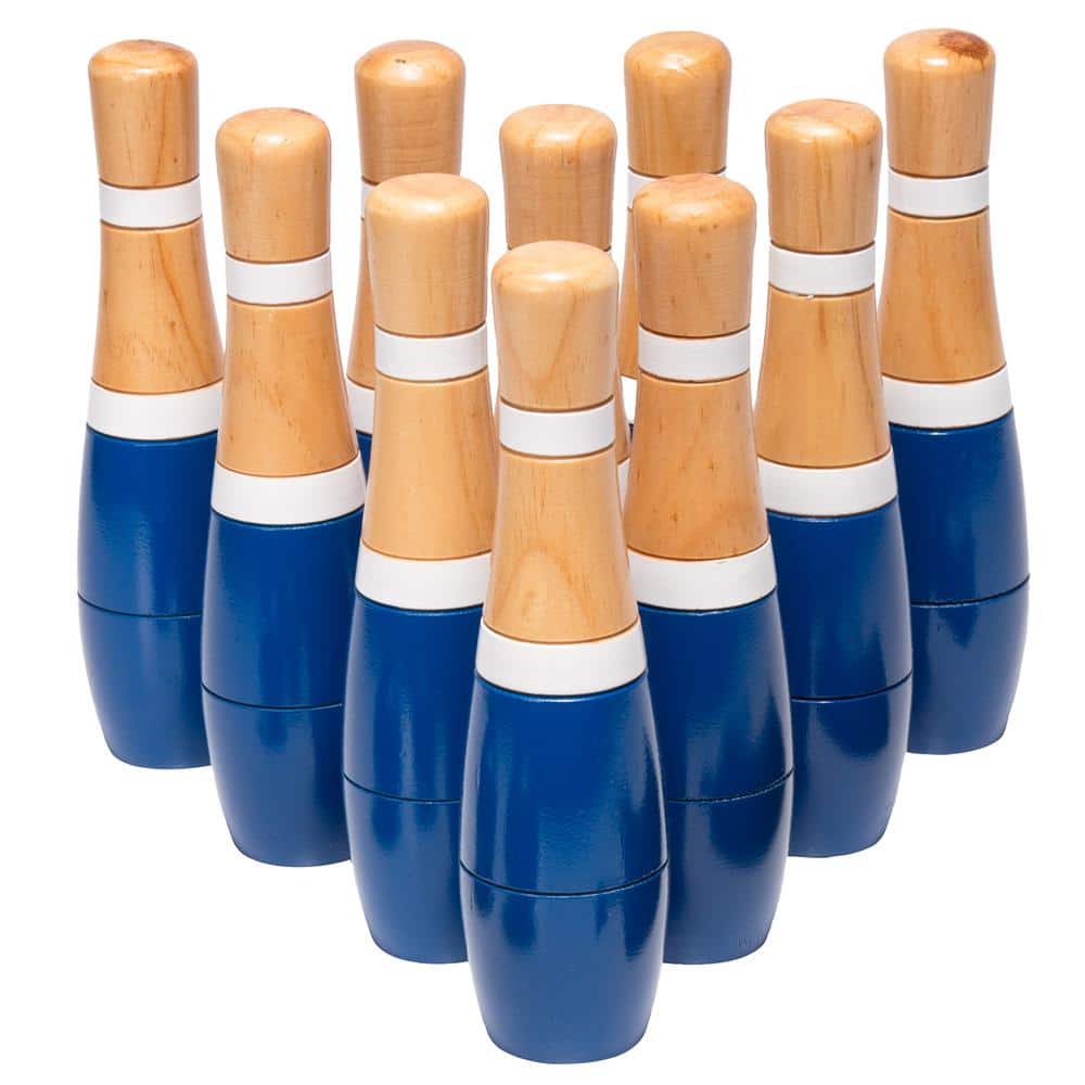 Versatile Gameplay: Includes 10 pins and 2 balls for classic 10-pin games and European skittle ball.