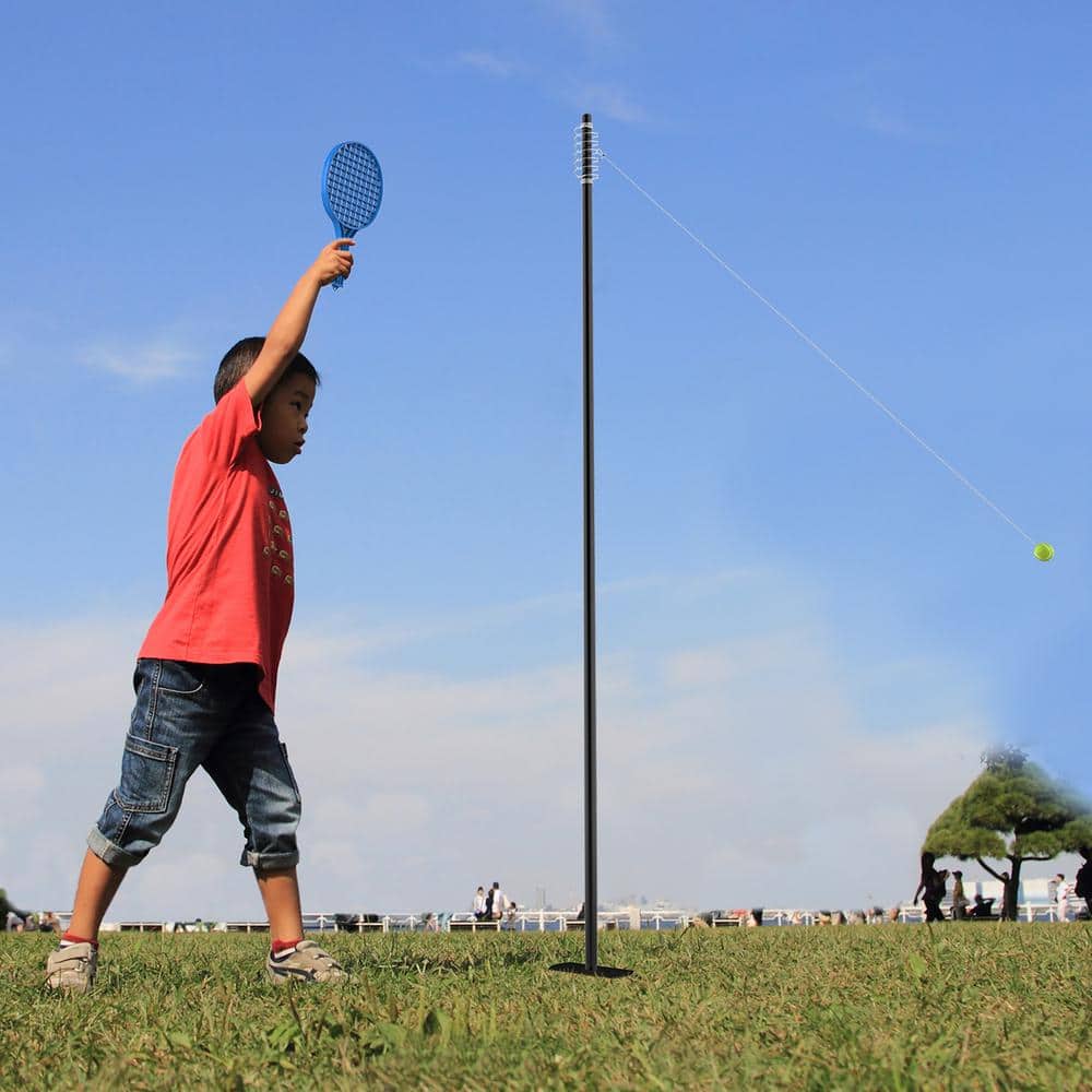 • Complete Set: Includes a pole, two racquets, and a tethered ball for immediate play.