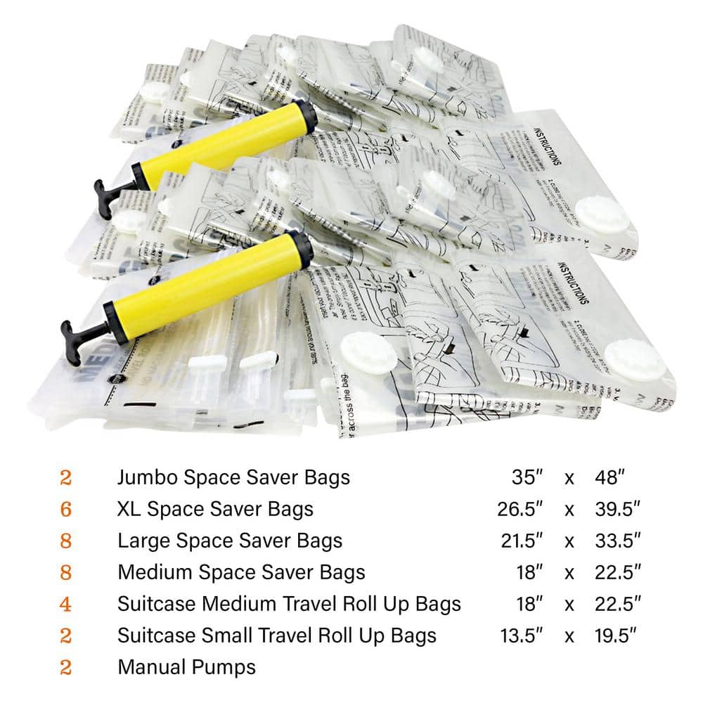 • Versatile Sizes: Includes jumbo, extra-large, large, and medium bags, plus roll-up bags for travel.