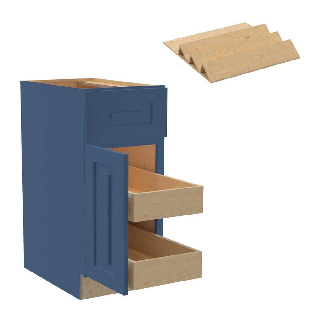 - Elegant Design: Features Shaker-style doors with a raised center panel and a deep Mythic Blue finish.