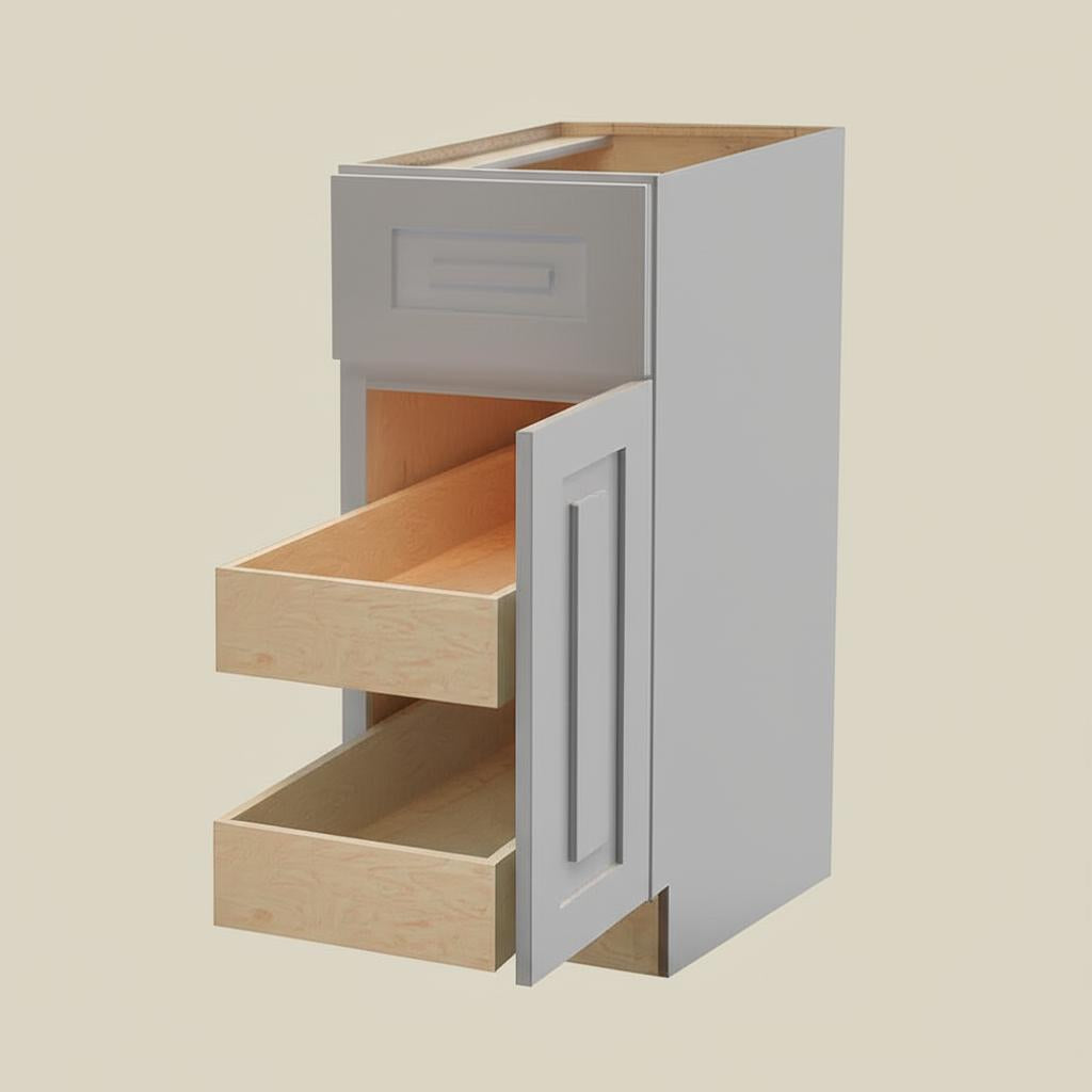 The Grayson Kitchen Cabinet transforms your culinary space into a haven of sophistication with its Pearl Gray finish and shaker-style design. Its all-plywood construction ensures durability while the soft-close features add a touch of luxury. Pair it with marble countertops and stainless steel appliances to create a modern yet timeless kitchen aesthetic. This cabinet is not just a storage solution but a statement piece for refined living.