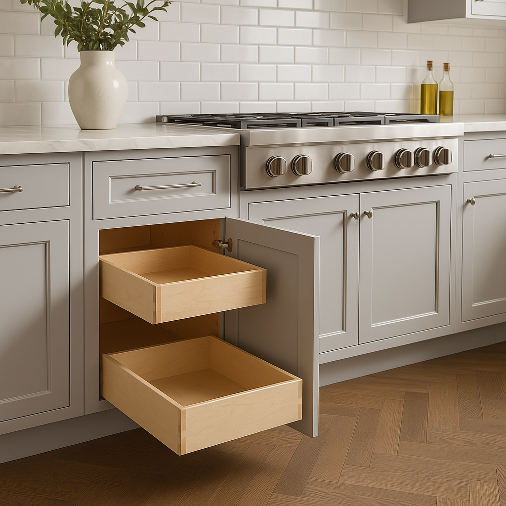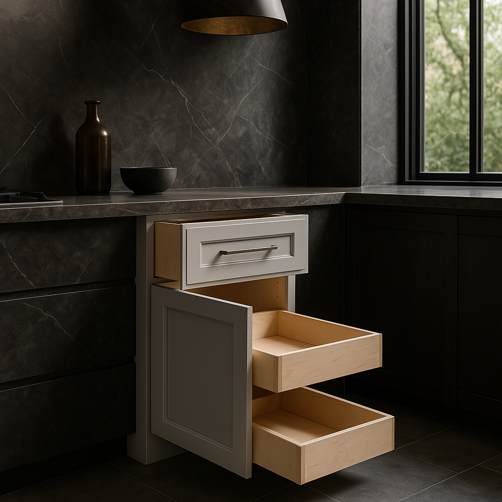 - Convenience: Features two soft-close roll-out trays and a built-in spice tray for optimal storage.